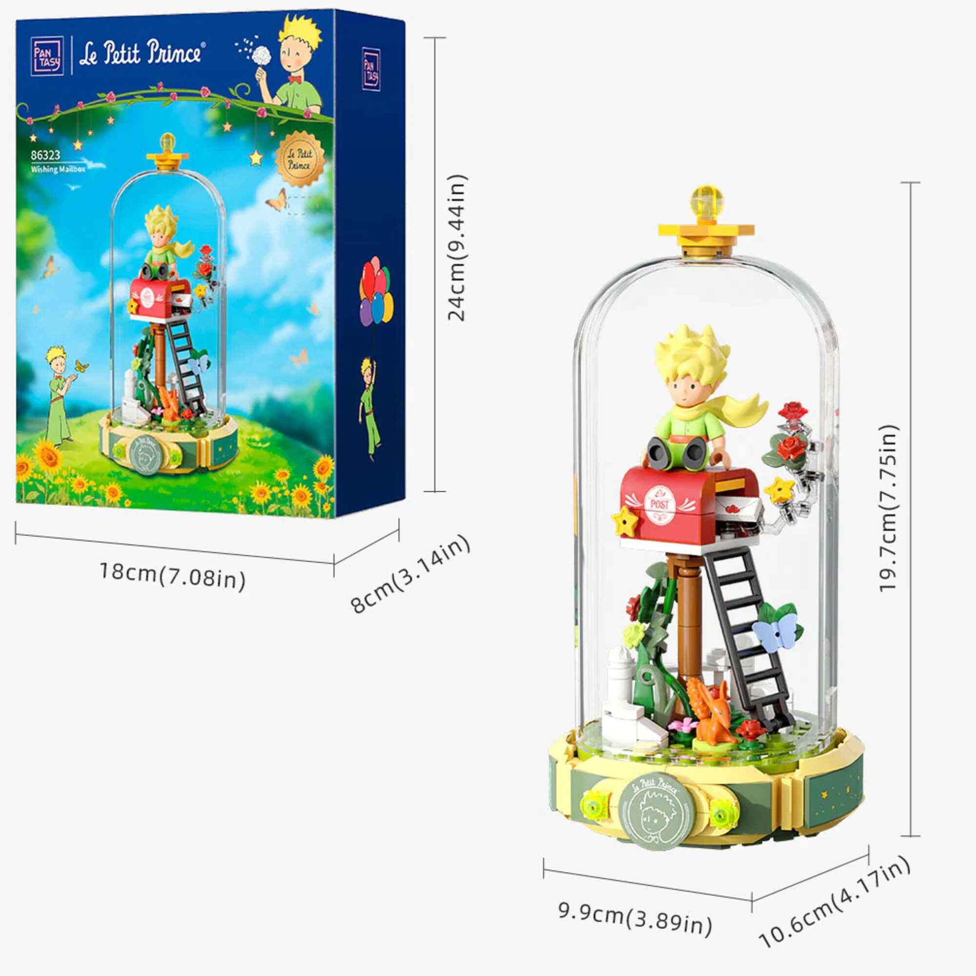 Intră în lumea poetică a cărții Micul Prinț cu acest set de design care îmbină tradiția literară cu o execuție modernă. Modelul „Cutia dorințelor” aduce o scenă fermecătoare cu o cutie poștală înconjurată de trandafiri și figurinele Micului Prinț și ale vulpii pe un suport elegant în forma unei cărți deschise. Datorită potrivirii precise a pieselor și decorurilor imprimate fără autocolante, fiecare detaliu iese în evidență, iar modelul își păstrează aspectul frumos pentru mulți ani.