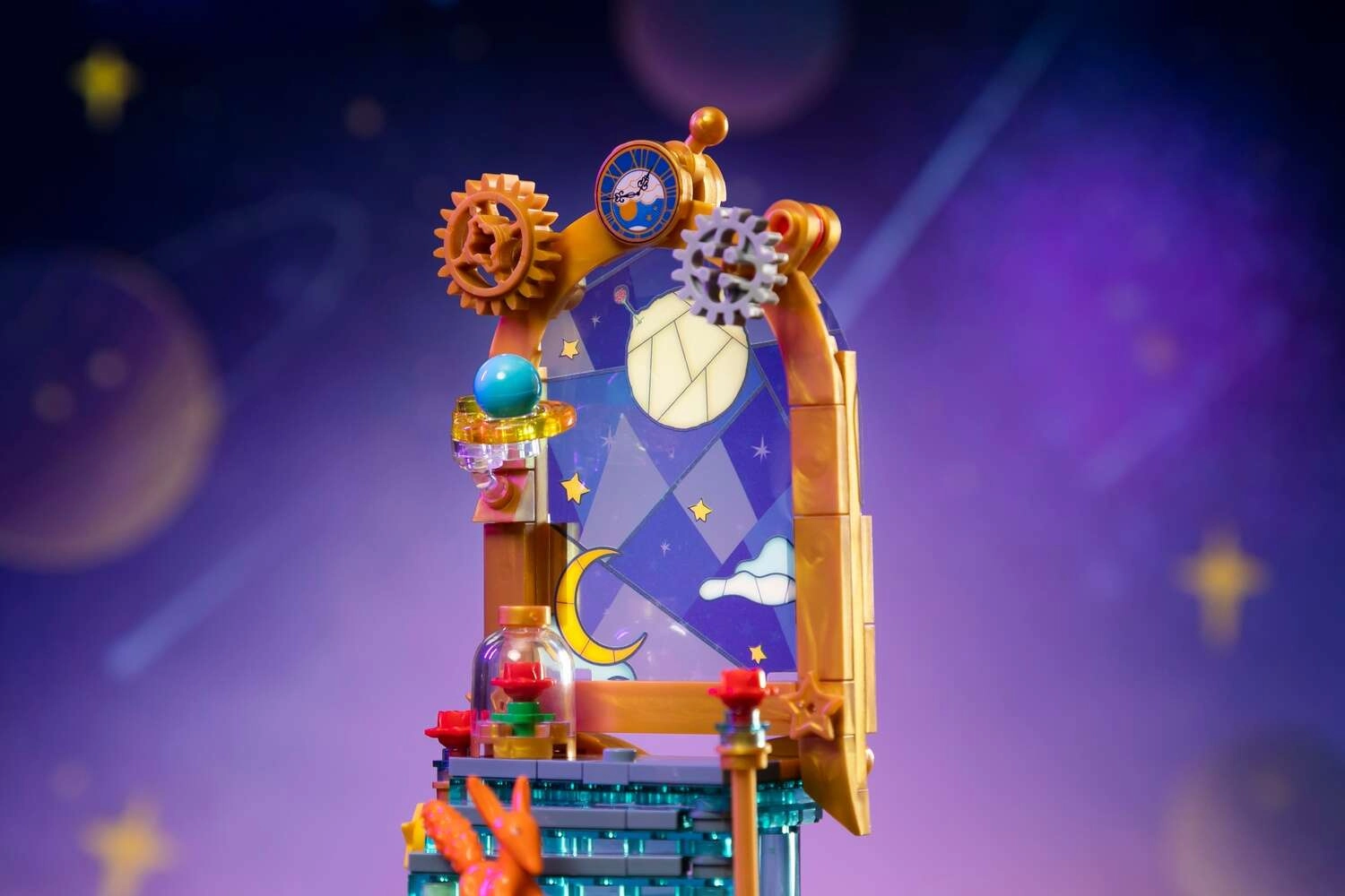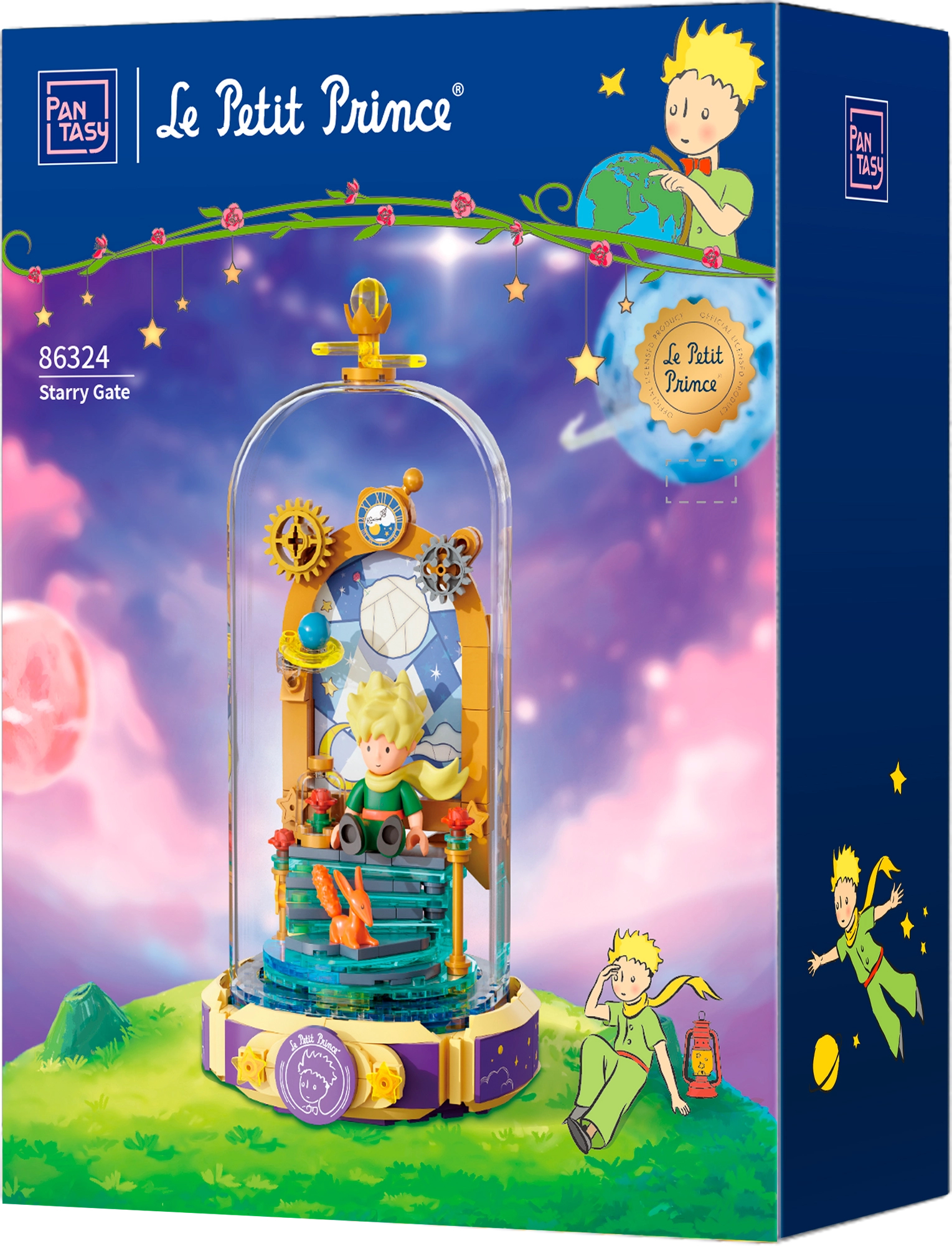 Intră în lumea poetică LE PETIT PRINCE și construiește scena „Poarta stelară” cu Micul Prinț și vulpea, împodobită cu stele aurii, trandafiri și ornamente delicate. Suportul în forma unei cărți deschise, cu inscripția „Le Petit Prince”, subliniază farmecul literar al acestei legende atemporale.