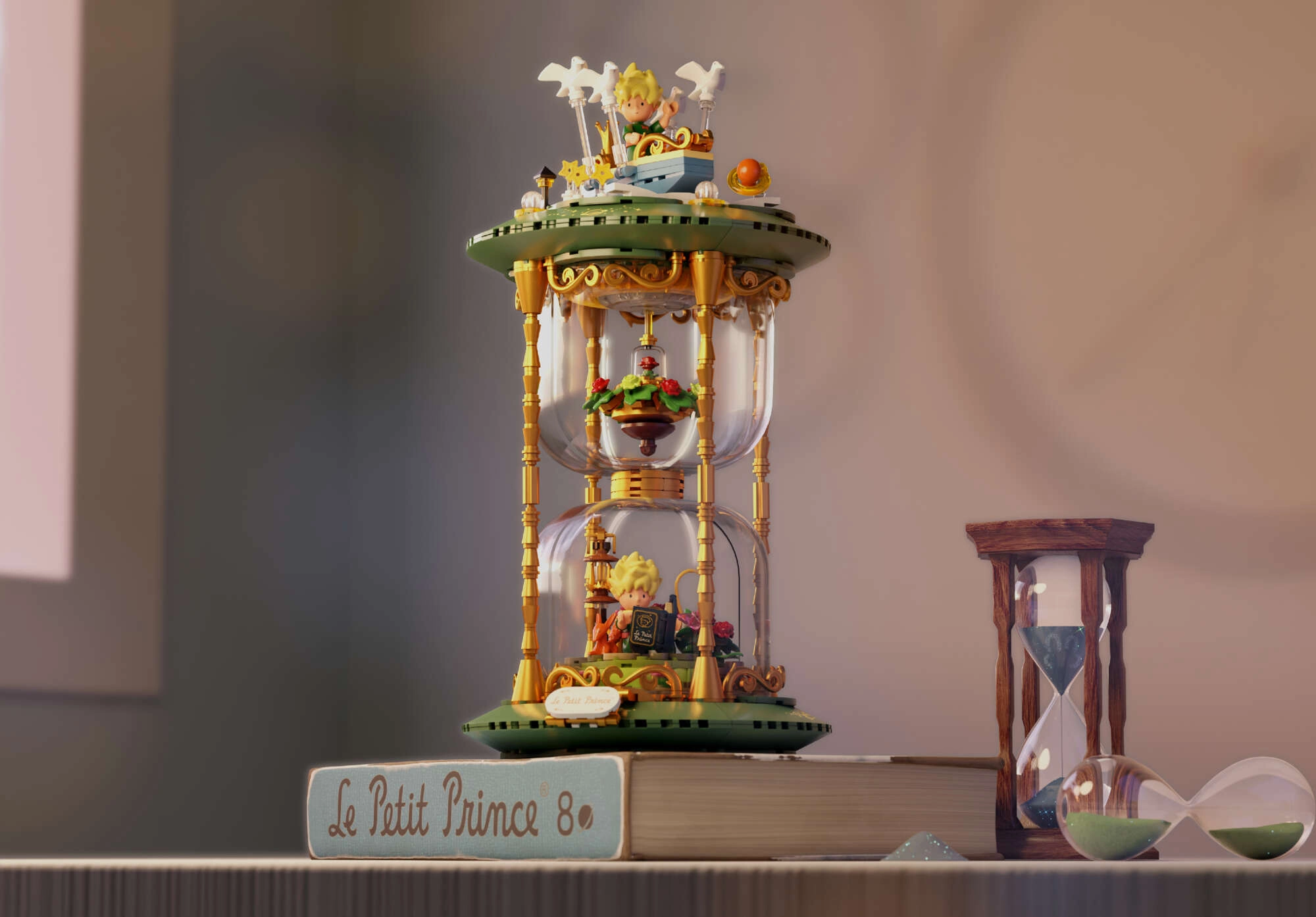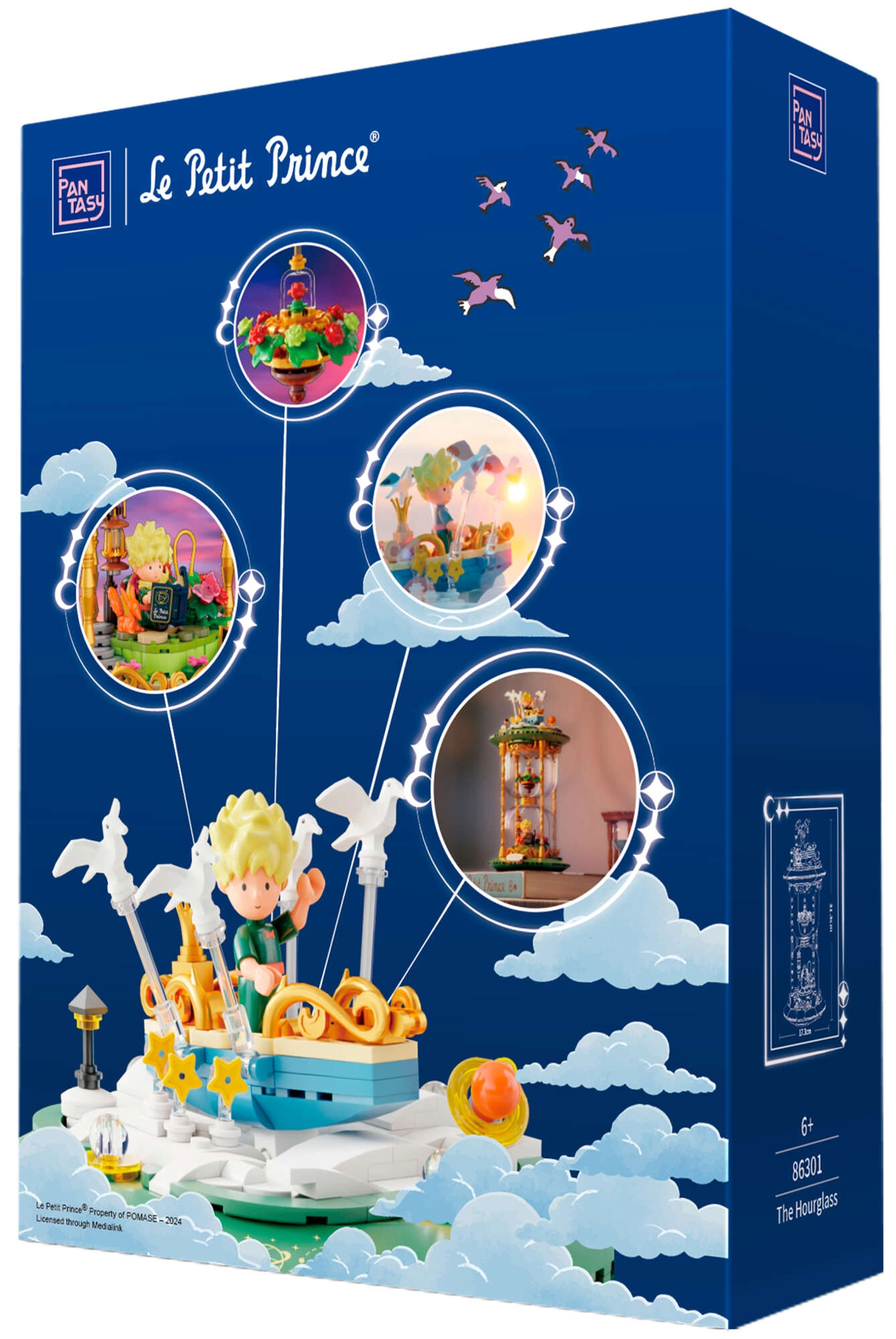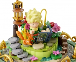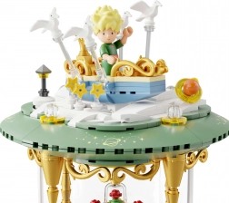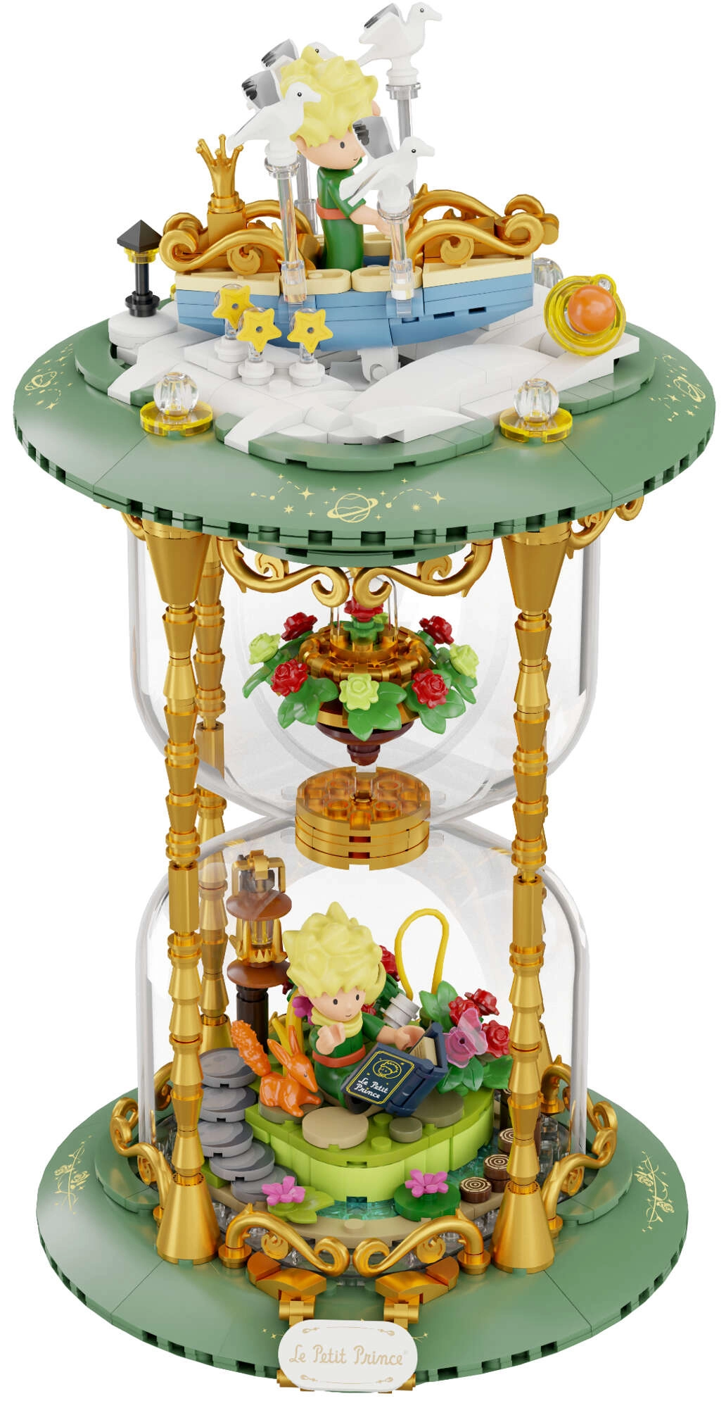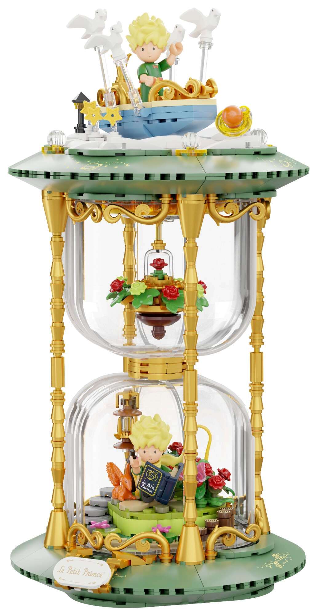 Acest set de expunere în forma unei clepsidre stilizate îmbină poezia operei atemporale cu designul modern. Suporturile verzi, stâlpii aurii și camerele transparente cu mini-scenete creează o dioramă spectaculoasă – Micul Prinț, vulpea, trandafirul sub clopot de sticlă și cerul înstelat. Datorită îmbinării precise a cărămizilor și modelor imprimate, modelul își păstrează aspectul curat mulți ani.