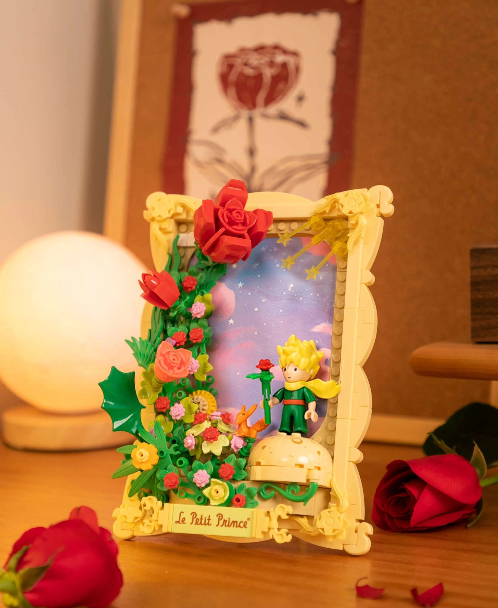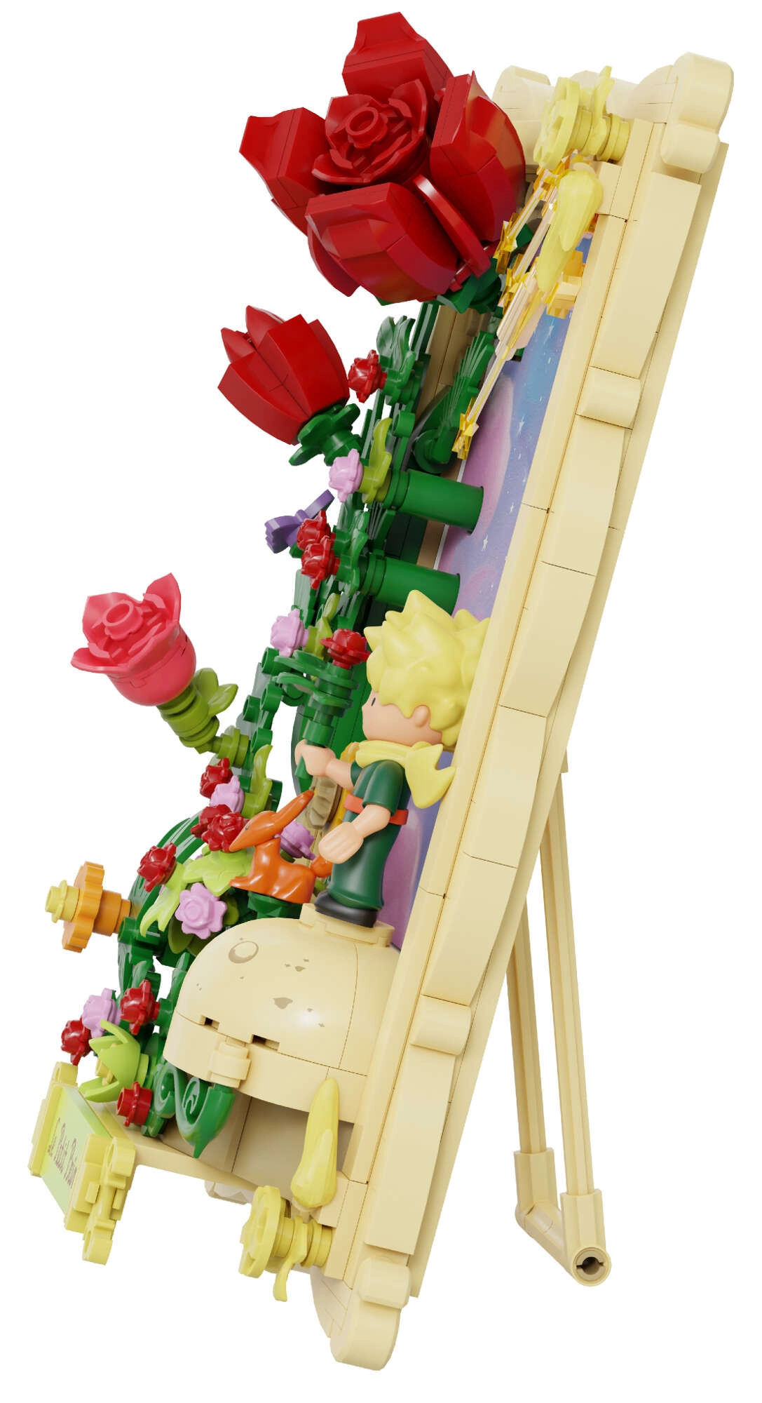 Acest set de design transpune poezia poveștii atemporale într-o decorare originală. Veți asambla un trandafir roșu expresiv, cu petale modelate fin, un cadru elegant și un suport cu inscripția Le Petit Prince. Datorită plasticului ABS de calitate și potrivirii precise, construcția este fluentă, iar rezultatul stabil – ideal pentru o poliță, un birou sau camera copilului.