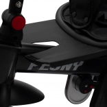 Confortul la mers este îmbunătățit de scaunul rotativ și pliabil pentru o poziție flexibilă a copilului, mânerul reglabil în două trepte pentru ghidare comodă și roțile din spumă EVA rezistentă, care sunt silențioase și nu necesită întreținere. Partea practică este asigurată de coșul mare posterior și coșulețul frontal pentru mărunțișuri, în timp ce luminile în stil mașină sport îi vor încânta pe micii șoferi.