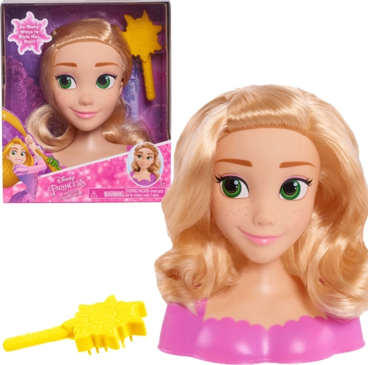 Acest cap de stilizare Rapunzel de la marca Just Play oferă copiilor posibilități nesfârșite de creare a coafurilor. Datorită părului lung, strălucitor și blond, micii stiliști pot încerca împletituri, cozi și onduleuri elegante. Setul este inspirat de îndrăgita poveste Disney O poveste încâlcită, așa că va încânta toți micii fani ai lumii fermecate a prințeselor.