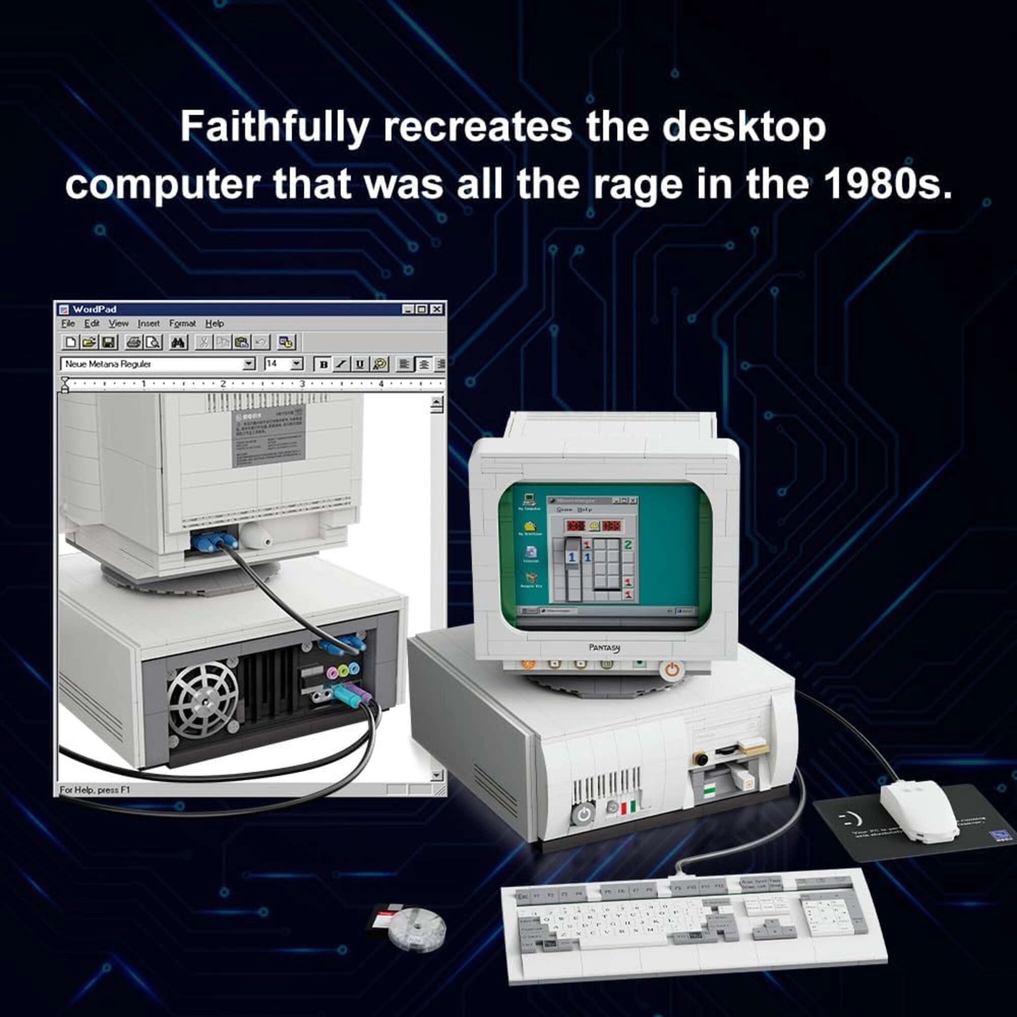 Computerul retro iconic din setul PANTASY surprinde fidel atmosfera anilor ’80. Fiecare piesă este realizată cu precizie pentru o potrivire perfectă și durabilitate. După asamblare, servește drept decor stilat pentru locuință sau birou și ca piesă de colecție impresionantă.