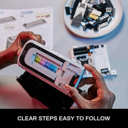 Datorită instrucțiunilor clare cu ilustrații color, construcția este fluidă și distractivă. Modelul final se evidențiază ca o decorațiune stilată pentru colțul de lucru sau camera de gaming. Piesele rezistente din ABS se îmbină ferm și minimizează rosturile pentru un aspect curat, elegant.