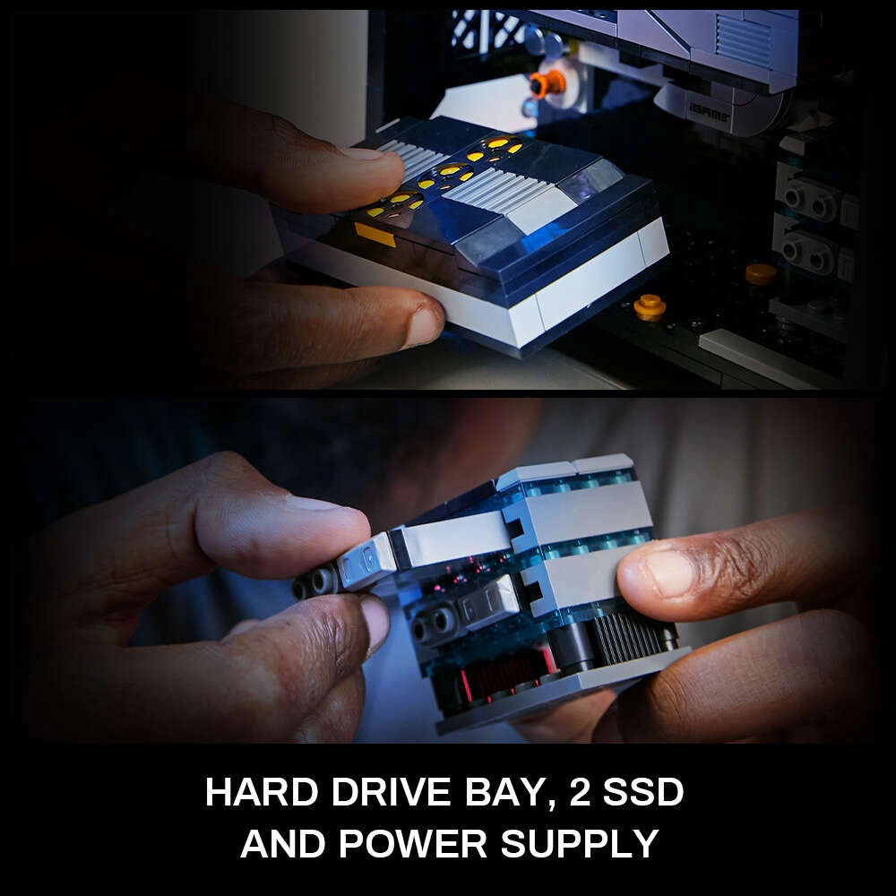 Asamblează placa video, sursa, suportul pentru SSD, placa de bază și modulele de memorie – construcția modulară amplifică senzația autentică de „build”.