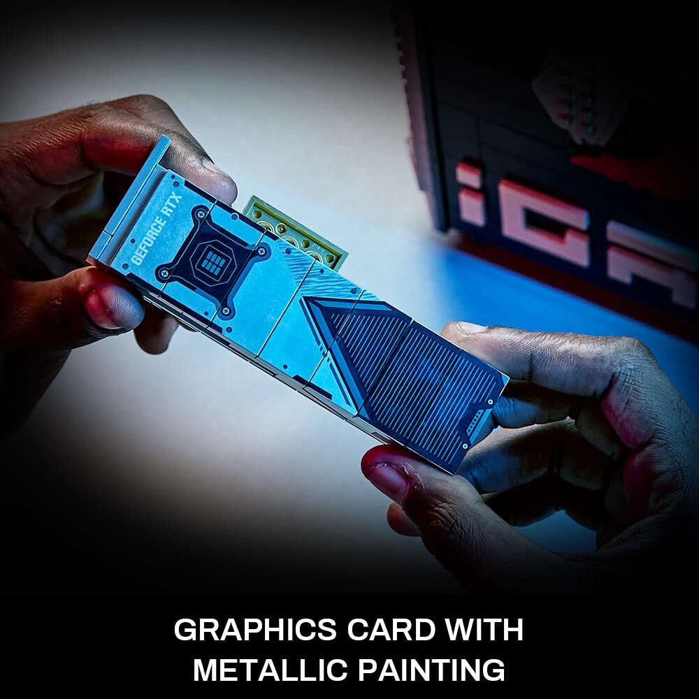 Descoperă setul original care reproduce fidel un desktop de gaming modern. Fiecare modul – de la placa video la sursă și suportul pentru SSD, până la placa de bază și memorii DDR – se asamblează separat, oferind o senzație realistă de „upgrade” al calculatorului. Tiparul de pad print precis pe piese asigură un aspect frumos pe termen lung, fără nevoie de lipire de etichete.