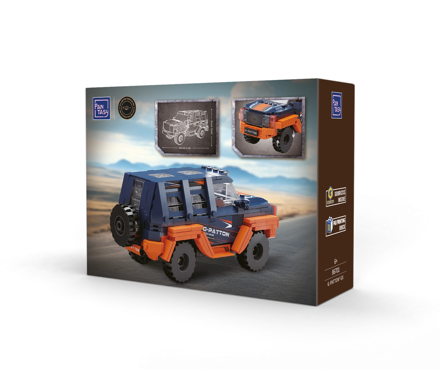 Trăiește bucuria construcției cu setul PANTASY G‑Patton GX. SUV‑ul off‑road robust se remarcă prin designul albastru‑portocaliu, geamurile transparente, grila detaliată și luminile de pe acoperiș. Piesele din ABS de calitate se fixează solid, iar imprimeurile rămân frumoase pe termen lung – fără bule sau autocolante care se dezlipesc.