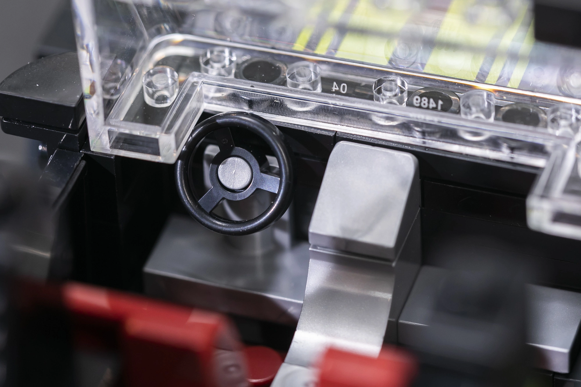 Modelul oferă o cabină bine realizată cu scaune roșii și detalii imprimate de lungă durată – fără autocolante care s‑ar dezlipi în timp.