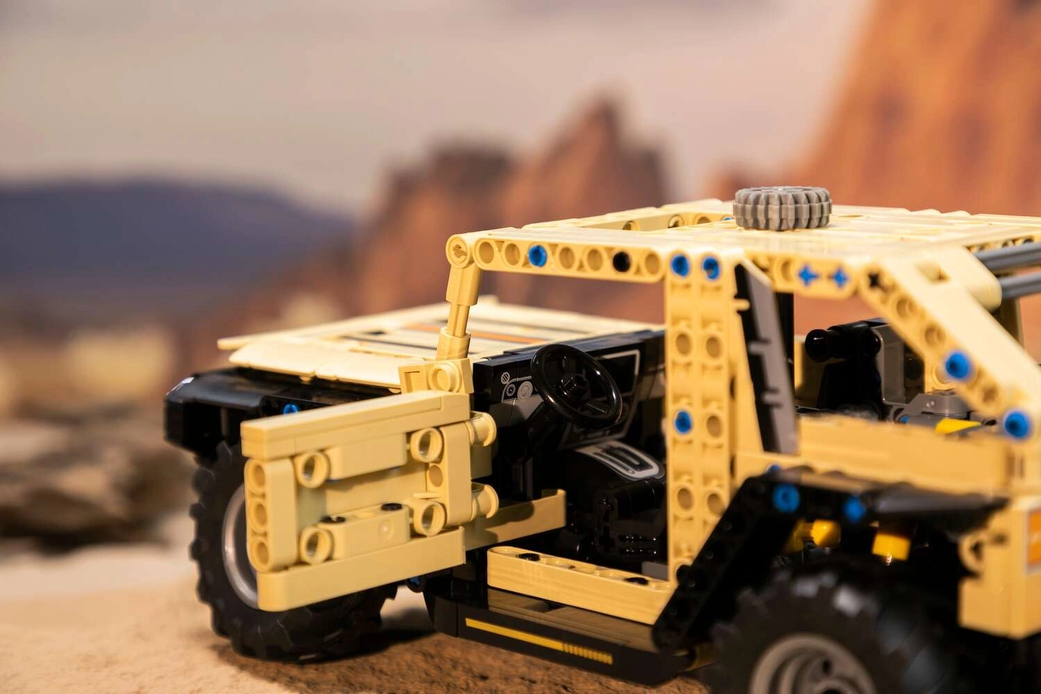 Cabina detaliată, cu volan și elemente de interior, amplifică impresia unui off-road autentic. Ușile se pot deschide cu ușurință.