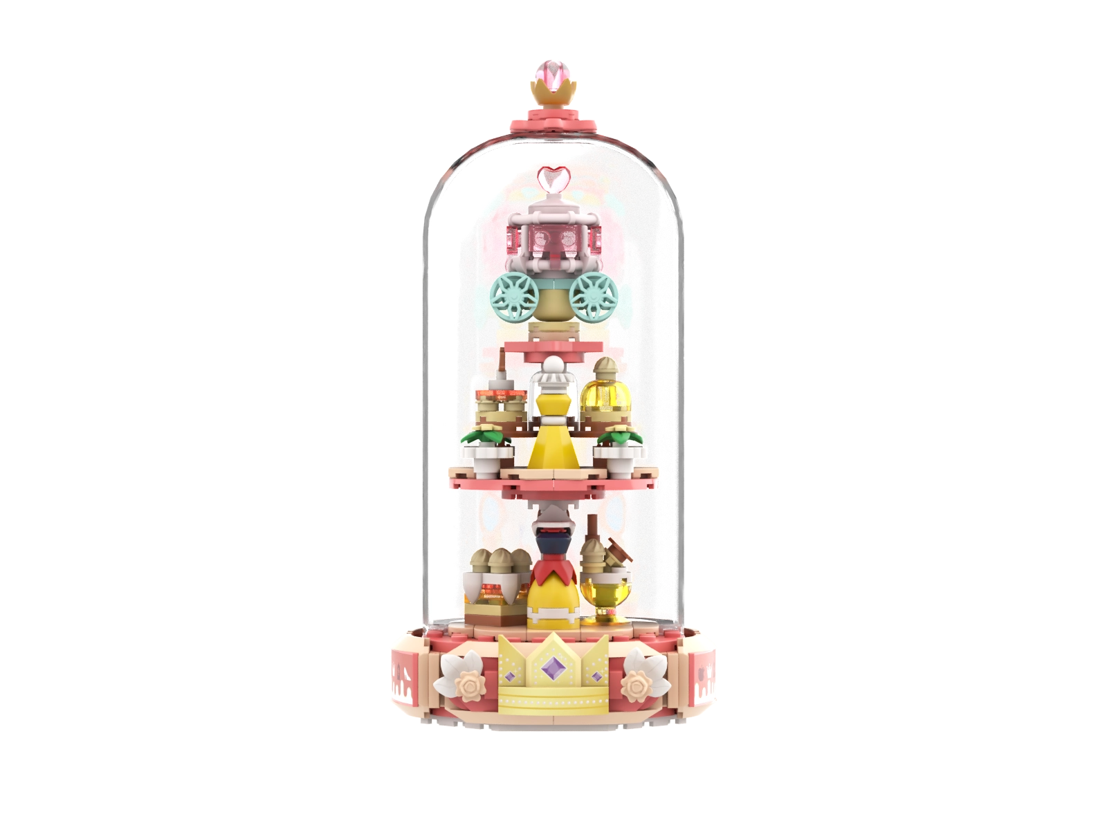Setul Dreamy Princess este conceput pentru iubitorii de povești, colecționari și copii. Etajele pe trei niveluri ascunse sub cupola transparentă amintesc de o elegantă piesă de expoziție de la un bal regal – cu decorațiuni delicate, culori pastelate și motive cu coroane. După finalizare, modelul este o frumoasă decorațiune de interior și o piesă stilată de colecție.