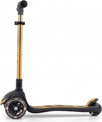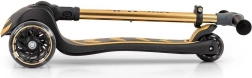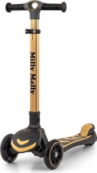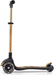 Trotineta stilată pentru copii MILLY MALLY Boogie Golden impresionează prin structură ușoară și rezistentă, trei roți stabile și roți LED luminoase pentru distracție în plus. Datorită direcției prin înclinare susține dezvoltarea echilibrului și a motricității, ghidonul cu înălțime reglabilă crește odată cu copilul, iar frâna pe apărătoarea spate asigură oprirea în siguranță.
