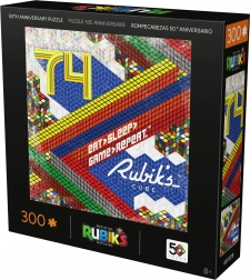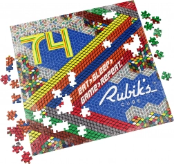 Bucură-te de relaxare și provocare cu puzzle-ul oficial dedicat aniversării de 50 de ani a cubului RUBIK’S. După asamblare, rezultă o mozaică colorată cu o față de cuburi aranjate, numărul proeminent „74” și sloganul „Eat, Sleep, Game, Repeat!”. Datorită culorilor contrastante și graficii puternice, imaginea finală arată excelent înrămată pe perete.