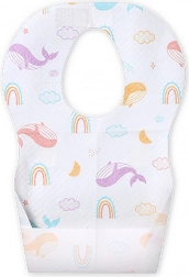 Forma ergonomică cu deschidere pentru gât se potrivește bine copiilor, iar buzunarul pentru firimituri pliabil prinde bucățile mai mari de mâncare. Ambalajul compact economisește spațiu în geantă, astfel le ai mereu la îndemână.