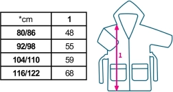 - Cu glugă, curea cusută, două buzunare mai adânci
