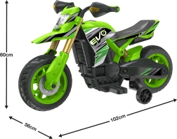 Motocicleta electrică stilată pentru copii EVO Venom oferă distracție sigură pentru micii piloți. Datorită alimentării de 6V, până la 60 de minute de mers, viteză maximă de 3 km/h și efecte luminoase, oferă o experiență grozavă de condus. Construcția stabilă, scărițele ergonomice și controlul intuitiv asigură confort și siguranță atât în casă, cât și afară.