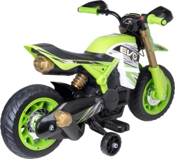 Motocicleta este ideală pentru copii de la 3 ani. Roțile late și rotițele stabilizatoare suplimentare asigură stabilitate excelentă – și pot fi, de asemenea, demontate atunci când micul șofer capătă mai multă încredere. Cu bateria de 6V, copiii se pot bucura de până la 60 de minute de plimbare; încărcarea completă durează 8–10 ore.