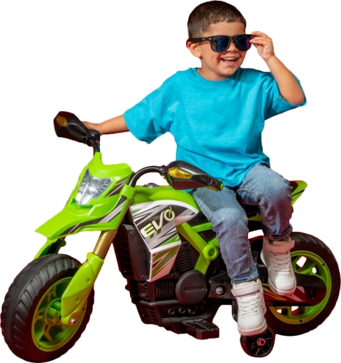 Descoperă designul sport și detaliile realiste ale motocicletei EVO Venom, care îi încântă atât pe copii, cât și pe părinți. Stilul inspirat de motocicletele reale, farul realist și construcția robustă din plastic sporesc încrederea în șa. Plimbarea este completată de luminile care se aprind în timpul mersului și de controlul ușor înainte prin butonul de pe ghidon.