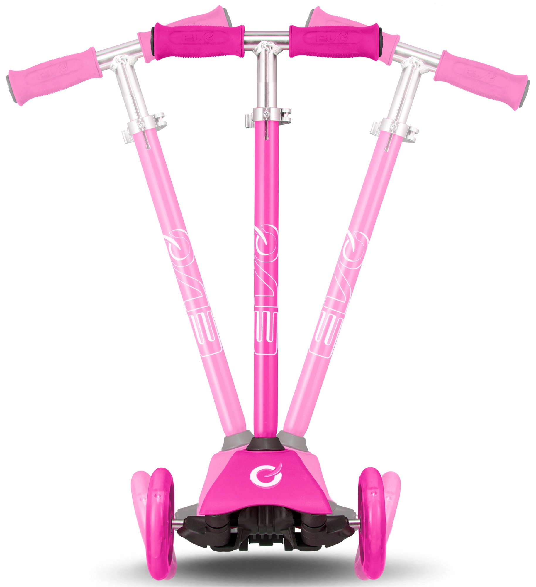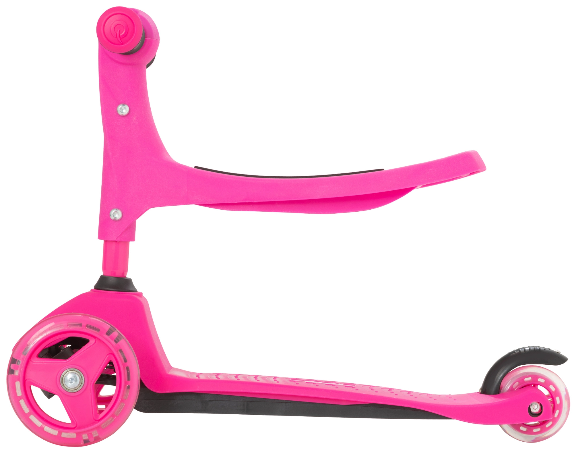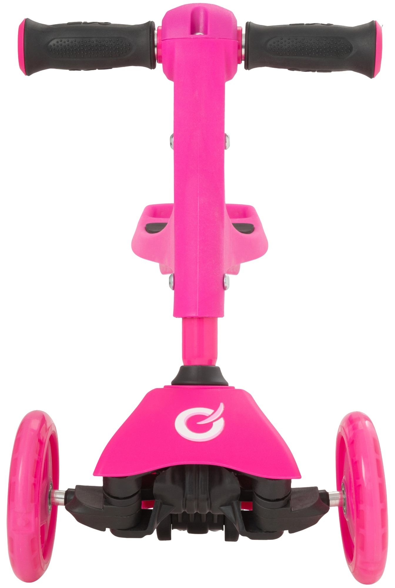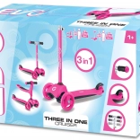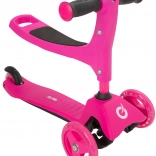 Trotineta pentru copii 2în1 EVO, roz, crește odată cu copilul tău: o poți transforma în câteva clipe din vehicul cu șa într-o trotinetă trică stabilă. Datorită celor două roți din față, platformei joase și direcției prin înclinare, oferă stabilitate excelentă, manevrabilitate ușoară și frânare sigură cu aripa spate. Ghidon cu înălțime reglabilă, roți silențioase cu rulmenți ABEC-5 și platformă antiderapantă pentru o plimbare confortabilă și distractivă atât pentru cei mici, cât și pentru copiii mai mari.