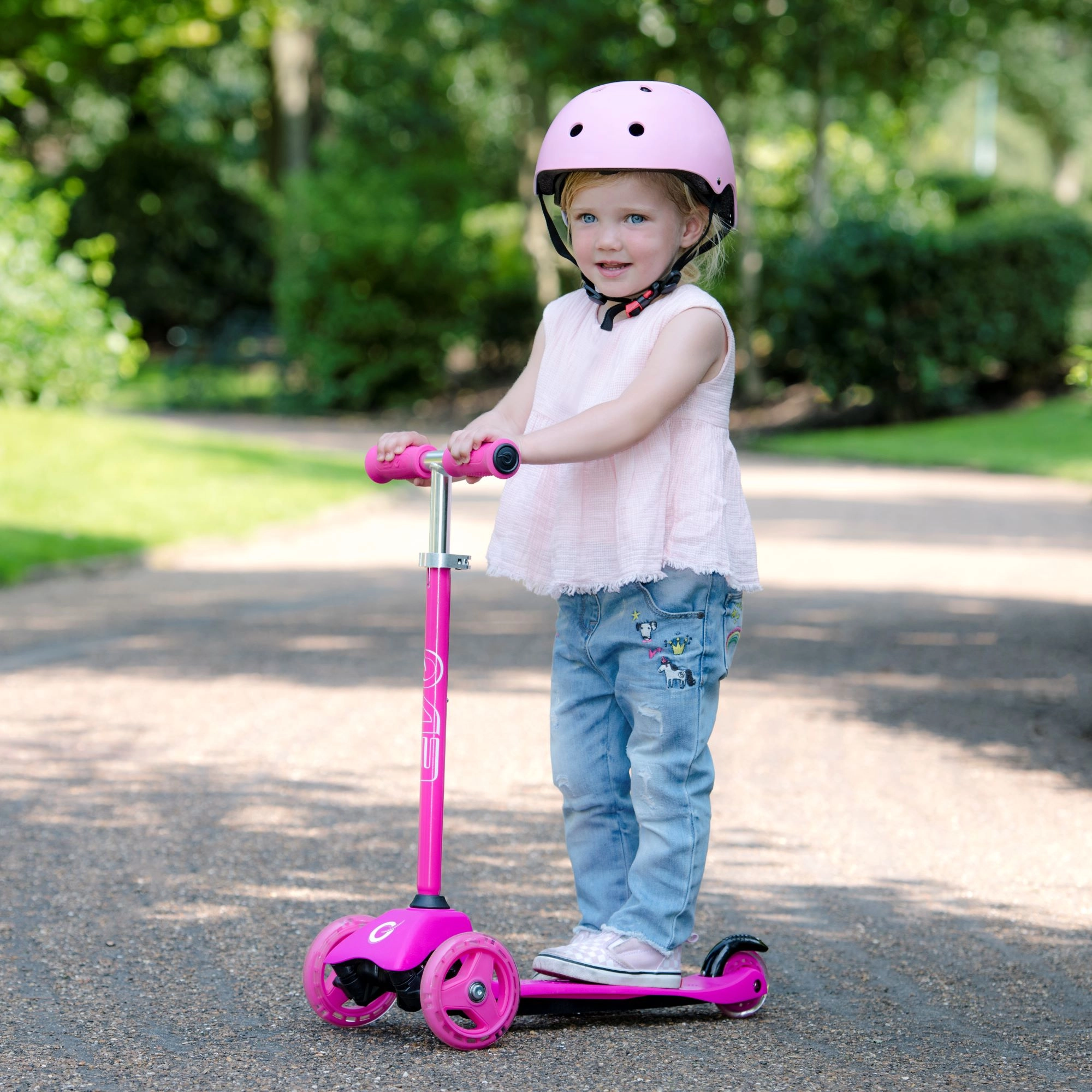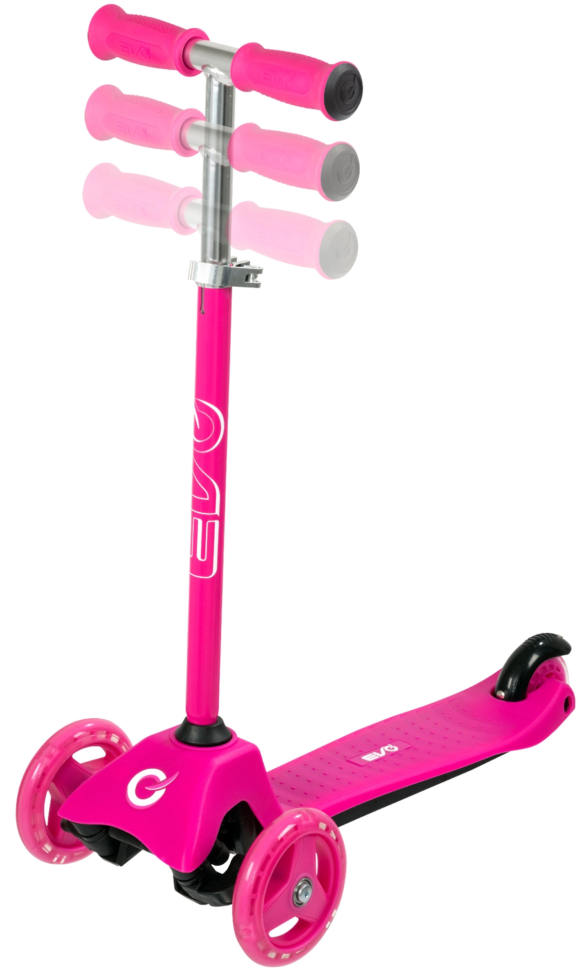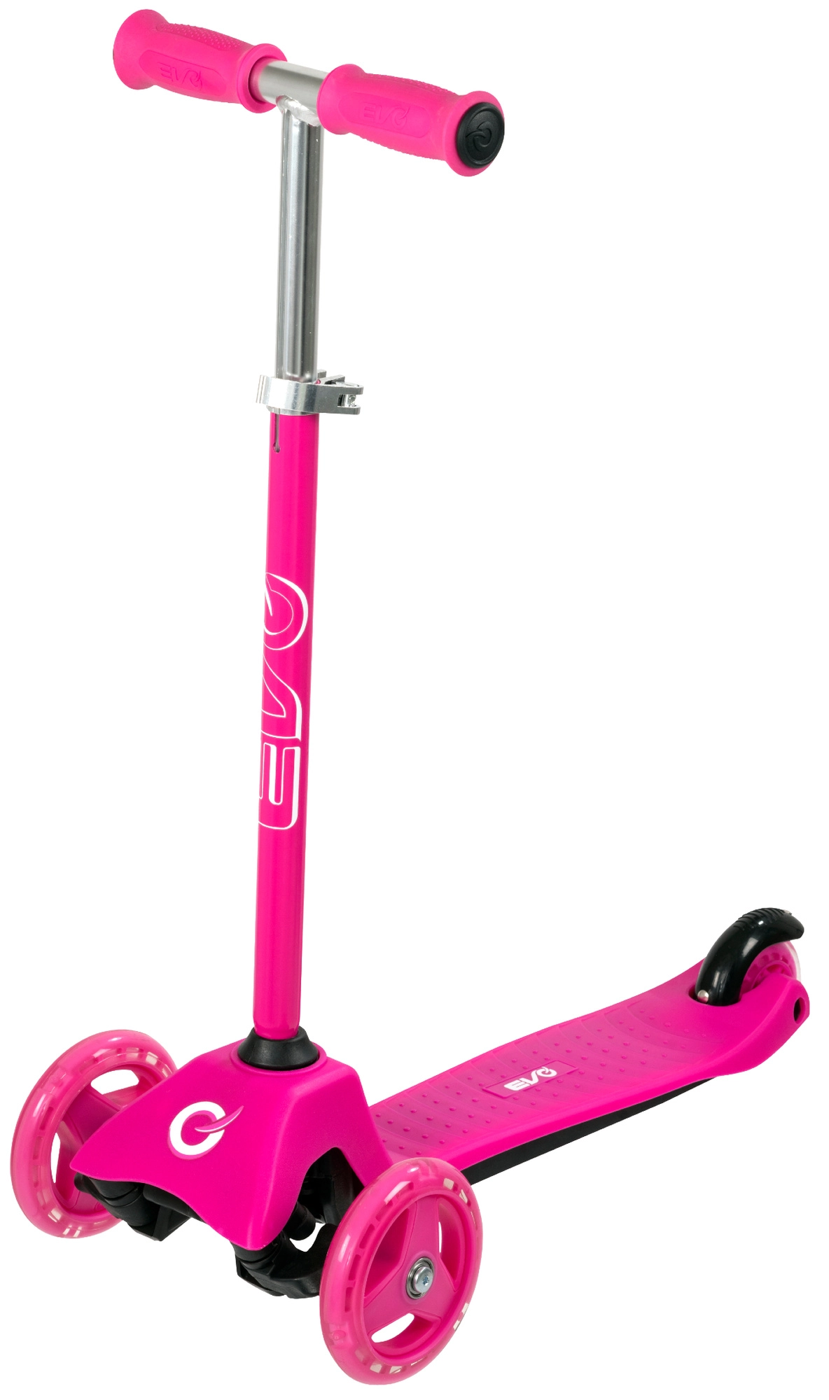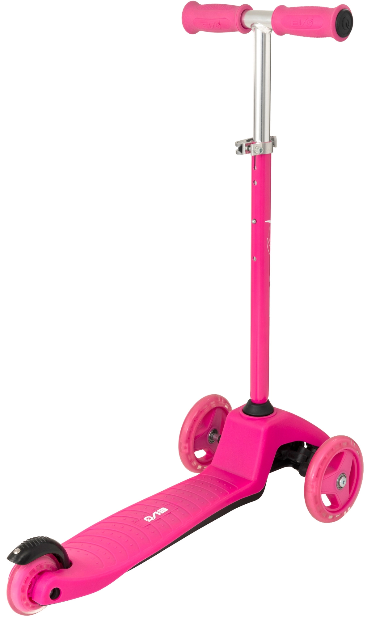 Trotineta pentru copii 2în1 EVO, roz, crește odată cu copilul tău: o poți transforma în câteva clipe din vehicul cu șa într-o trotinetă trică stabilă. Datorită celor două roți din față, platformei joase și direcției prin înclinare, oferă stabilitate excelentă, manevrabilitate ușoară și frânare sigură cu aripa spate. Ghidon cu înălțime reglabilă, roți silențioase cu rulmenți ABEC-5 și platformă antiderapantă pentru o plimbare confortabilă și distractivă atât pentru cei mici, cât și pentru copiii mai mari.