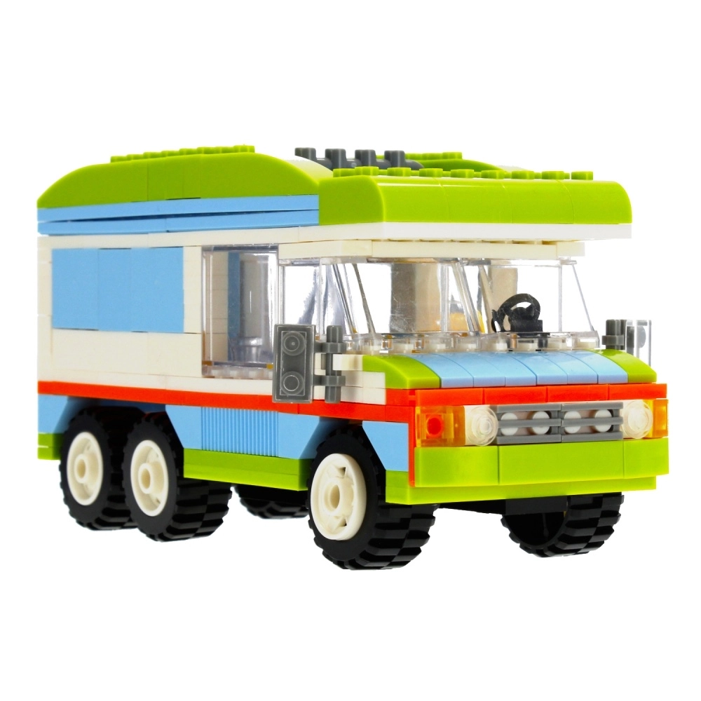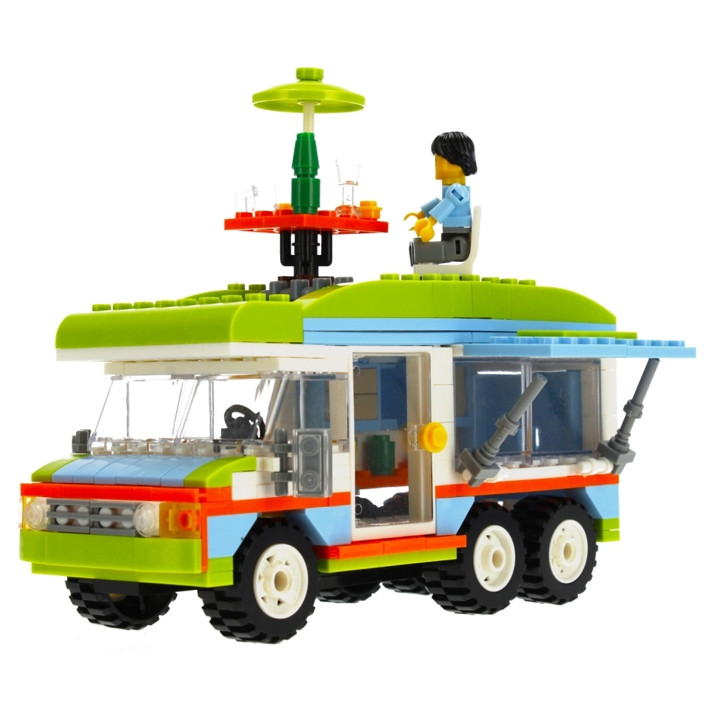 Construiește-ți propria aventură de camping! Cu acest set creezi o rulotă detaliată cu părți care se deschid, suport pe acoperiș pentru barcă sau caiac, zonă de relaxare în aer liber, grătar și scene pentru activități recreative. Datorită celor 343 de piese, copiii își dezvoltă creativitatea și își exersează răbdarea și reprezentarea spațială.
