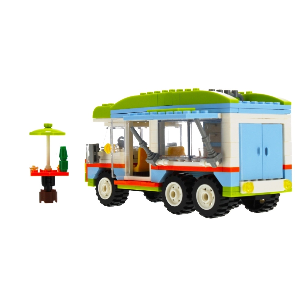 - Set de construcție cu 343 piese, instrucțiuni de asamblare, accesorii pentru camping