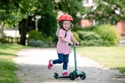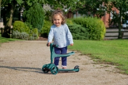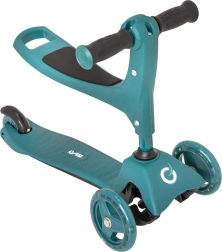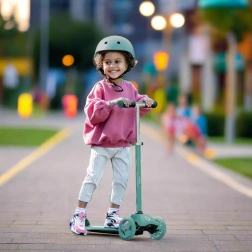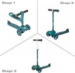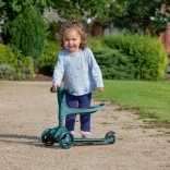 Această trotinetă triplă inteligentă 2‑în‑1 se transformă în câteva clipe din vehicul de împins cu șezut în trotinetă clasică. Datorită ghidonului reglabil (aprox. 40 cm în modul vehicul de împins și 62–72 cm în modul trotinetă) crește odată cu copilul și oferă siguranță atât la primele plimbări, cât și mai târziu la un ritm mai alert.