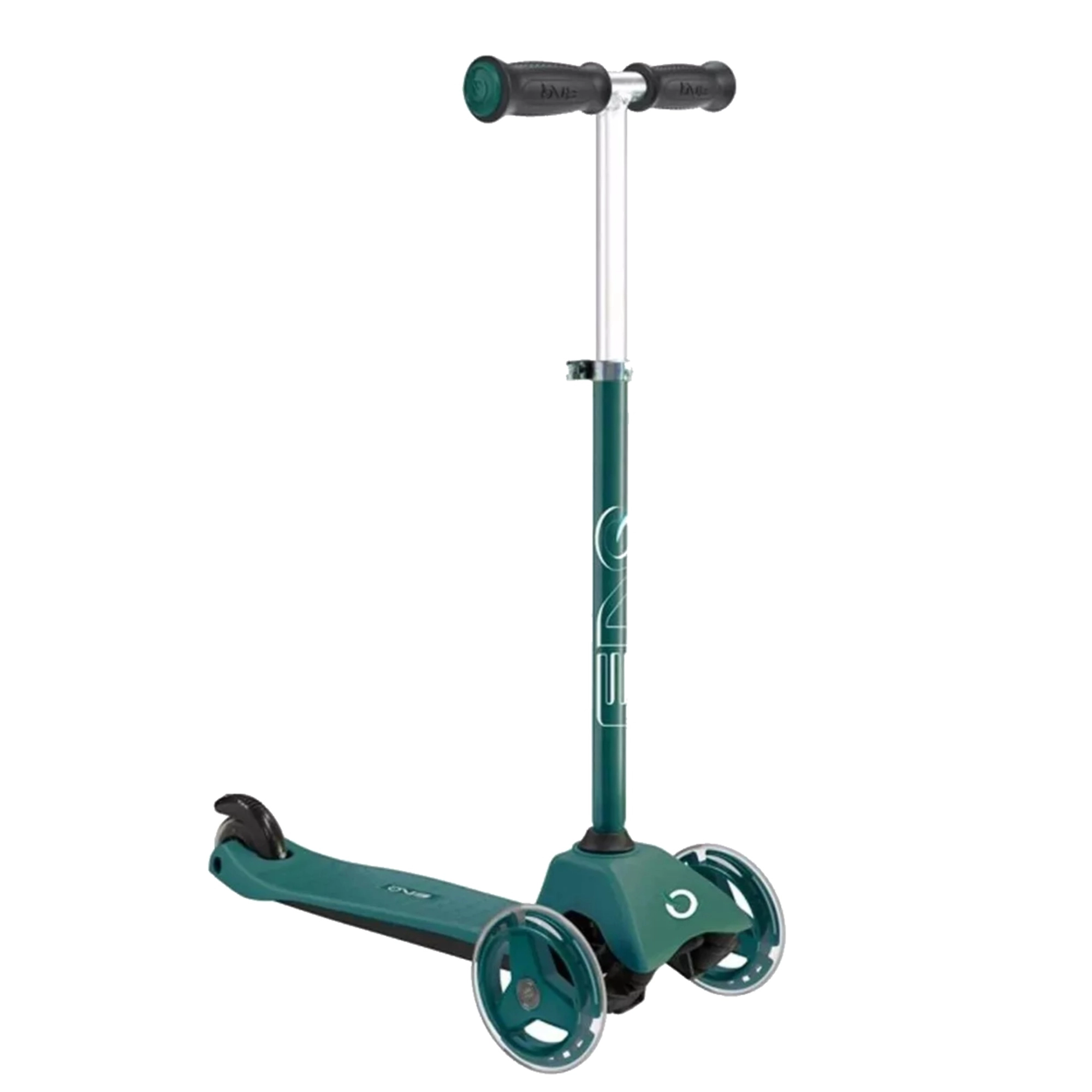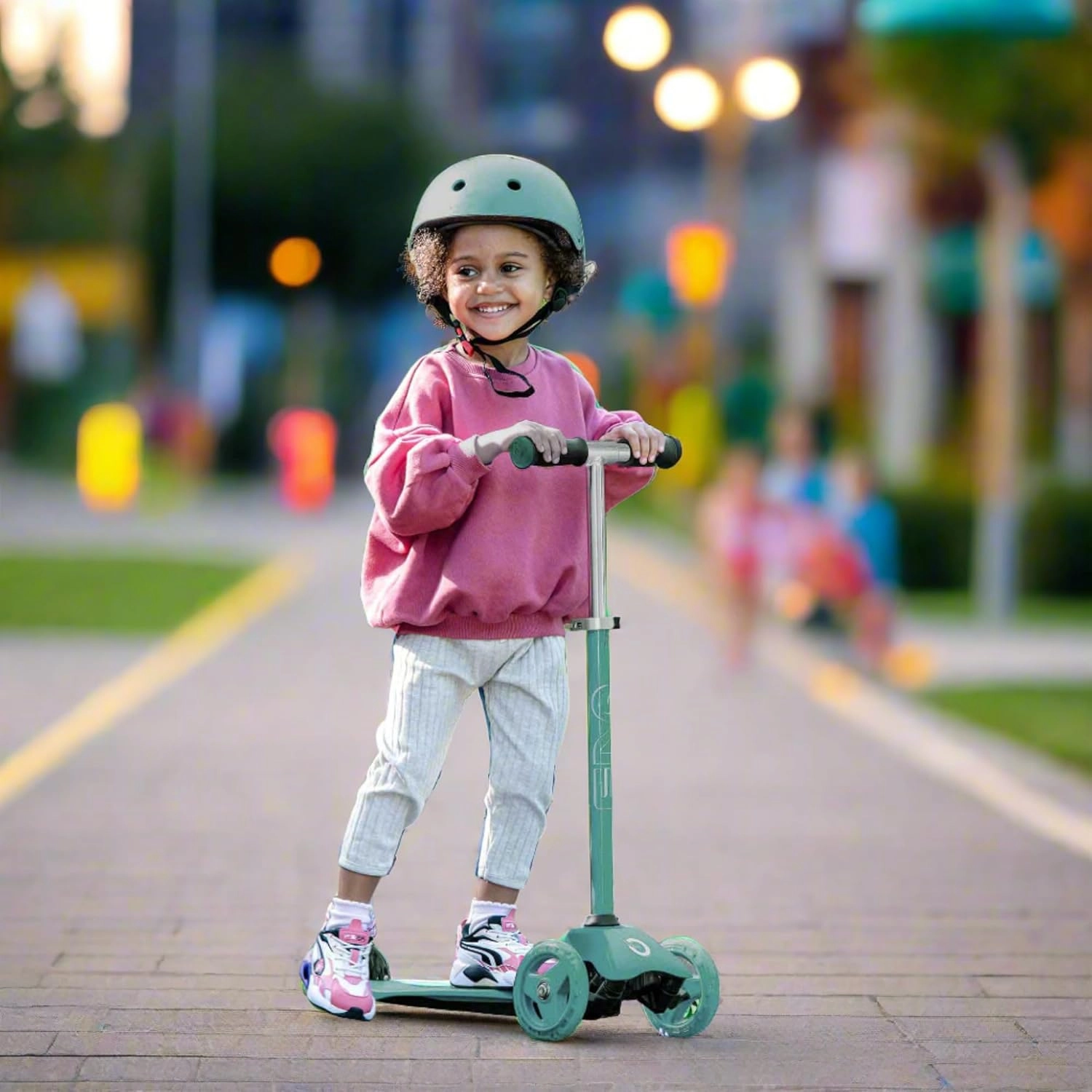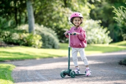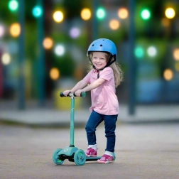 Stabilitatea și siguranța sunt asigurate de două roți frontale mari și de roata spate mai mică cu frână de picior. Mersul lin și silențios este susținut de rulmenți ABEC-5, iar gripurile din TPE oferă o priză fermă fără alunecare. Greutatea redusă de 2,75 kg facilitează transportul și utilizarea zilnică.