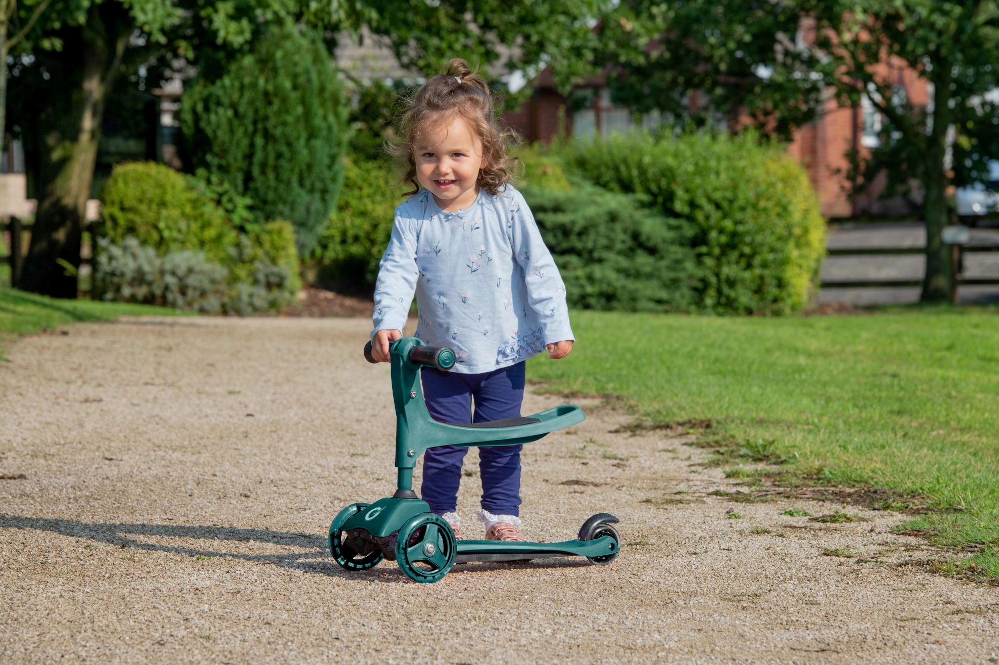2‑în‑1: vehicul de împins cu șezut și trotinetă