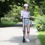Dintr-o singură mișcare pliați trotineta într-o formă compactă, iar datorită cricului integrat o puteți parca în siguranță oriunde – acasă, la școală sau în parc.