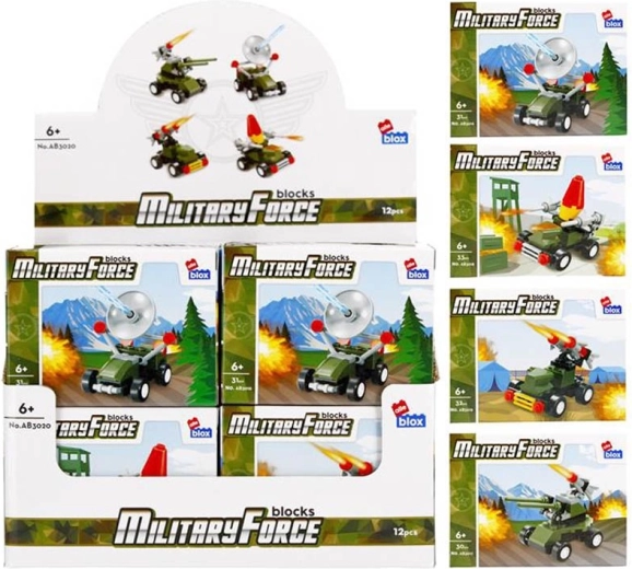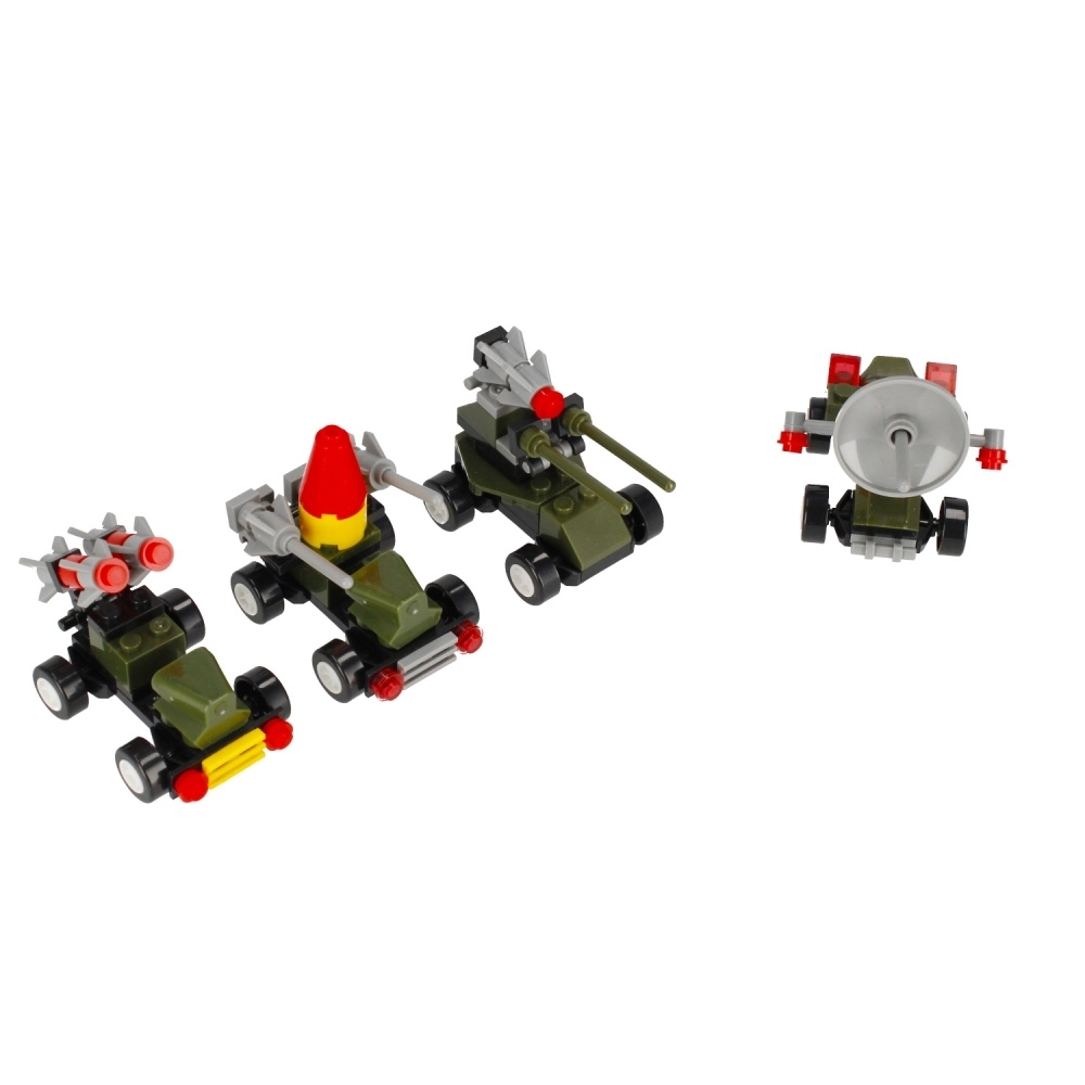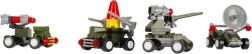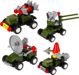 Descoperă seturile compacte de vehicule militare, cu ajutorul cărora copiii pot construi cu ușurință un lansator de rachete, un vehicul radar sau un vehicul antiaerian. Piesele sunt compatibile în cadrul setului, vehiculele au roți funcționale, turele sau radare rotative și se asamblează ușor urmând ghidul inclus.