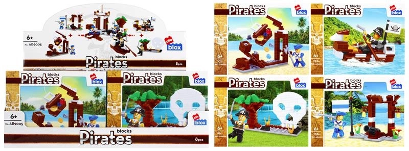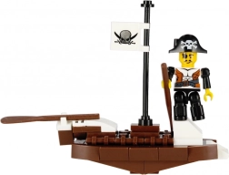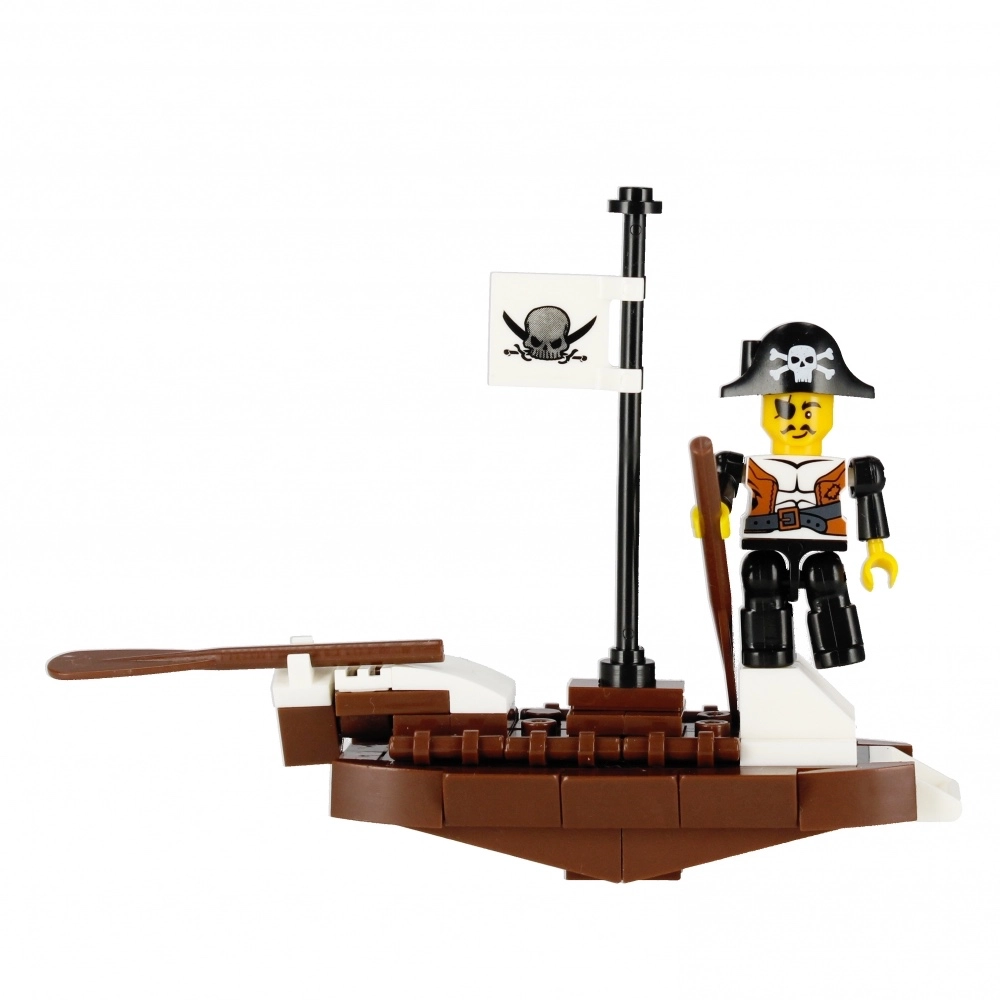 Ai la dispoziție 4 variante diferite – de la bărcuță de pirați până la un mic chei și un post de pază. Piesele sunt compatibile cu majoritatea seturilor similare, astfel încât lumea piraților poate fi extinsă și combinată cu alte seturi. Ambalajul compact de 19 × 14 × 5 cm este excelent pentru călătorii și ca idee de cadou.
