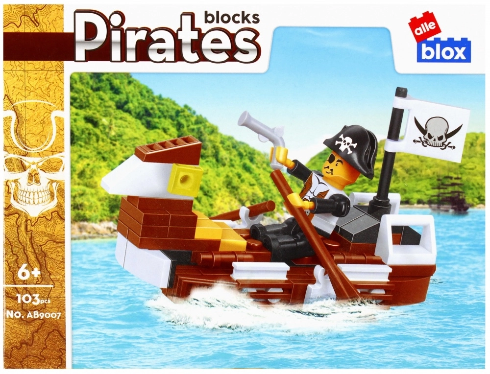 Acest set de construcție cu pirați aduce copiilor ore de aventură pe mare și pe uscat. În fiecare pachet găsești 96–103 cărămizi din plastic rezistent, figurină/figurine și accesorii tematice, precum tunuri, steaguri, vâsle, felinare sau plante. Asamblarea ușoară este asigurată de ghidul inclus, astfel încât copiii își vor construi rapid propriile scene cu pirați.