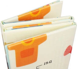 Spuma XPE premium asigură amortizare excelentă, izolație termică față de podeaua rece și durată lungă de viață, fără miros și fără substanțe toxice. Salteaua este ușoară, pliabilă și cu două fețe, astfel încât o poți transporta, depozita și adapta ușor jocului din momentul respectiv. Textura antiderapantă susține târârea în siguranță și primii pași și, în același timp, stimulează delicat percepția senzorială.