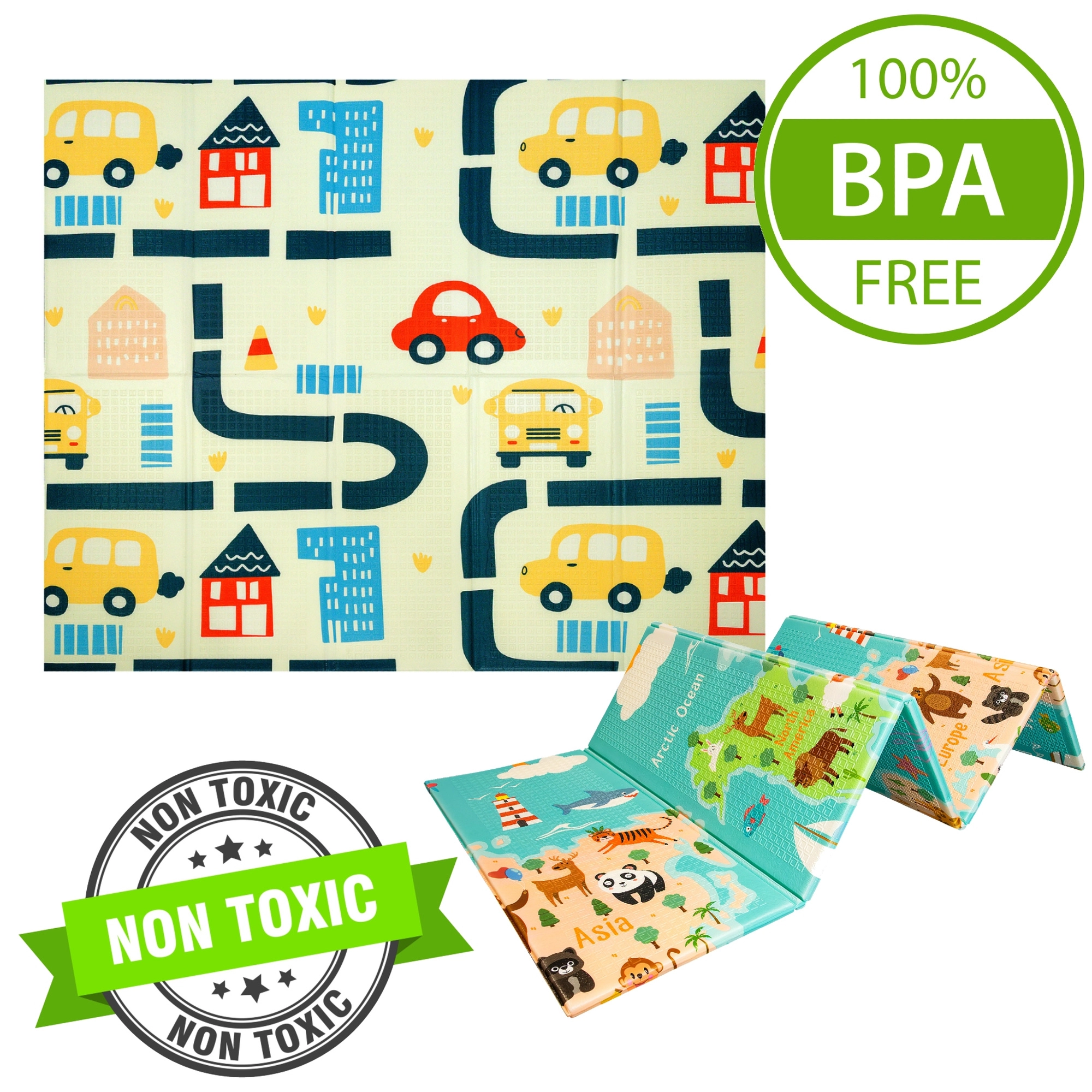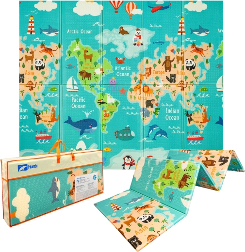 Descoperă salteaua de joacă HUMBI, spațioasă și moale, din spumă XPE de calitate, cu dimensiunile 200 × 180 × 1 cm. Este cu două fețe – o parte cu o hartă colorată a lumii, cealaltă cu străzi urbane – și oferă o suprafață sigură, impermeabilă și ușor de curățat pentru bebeluși și copii încă de la naștere. Datorită construcției pliabile și genții practice incluse, este ideală pentru camera copilului, living și grădină. Fără substanțe nocive, certificări CE, EN71 și REACH pentru liniștea maximă a părinților.