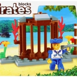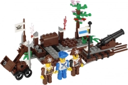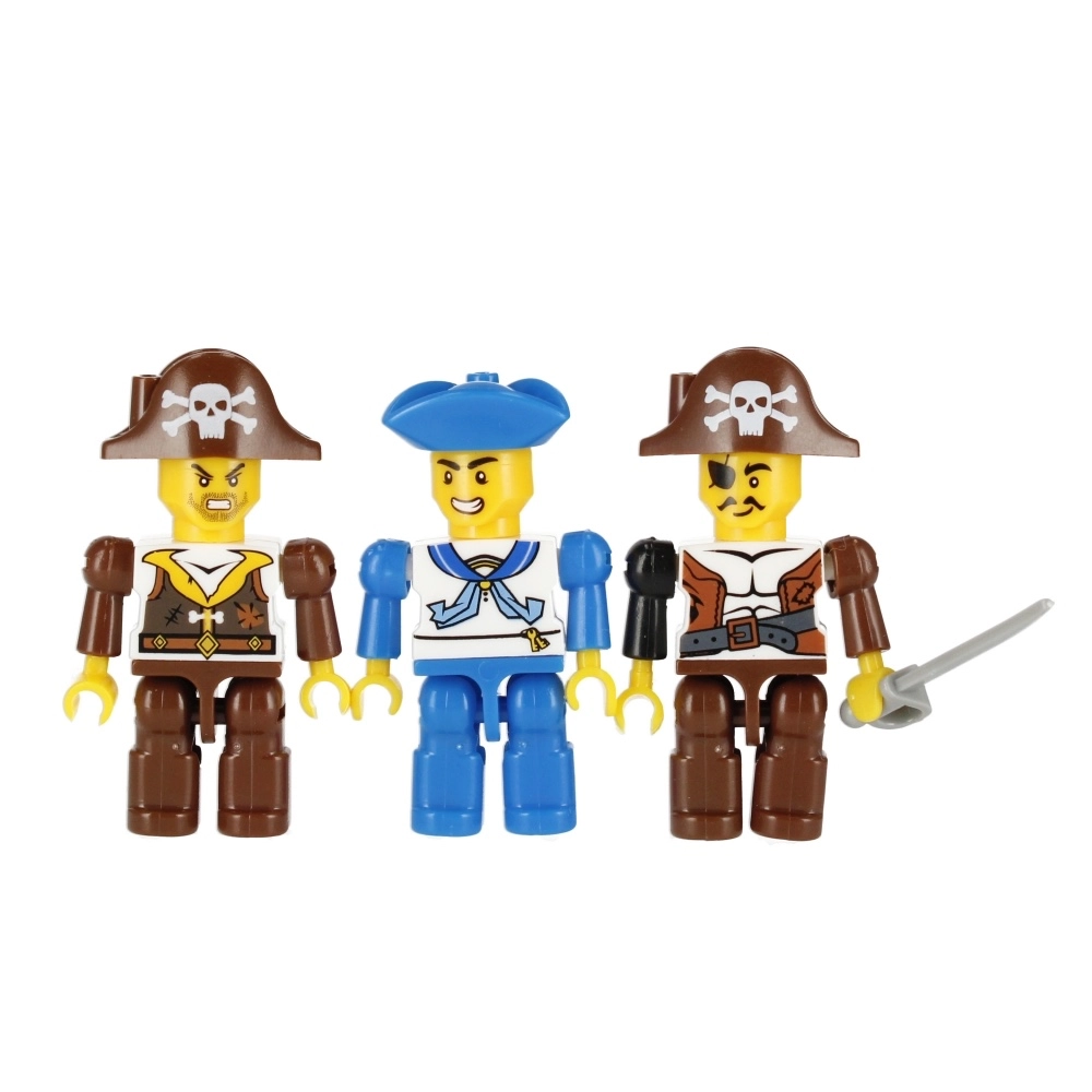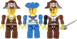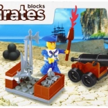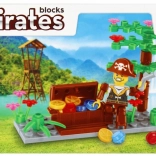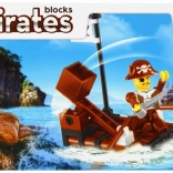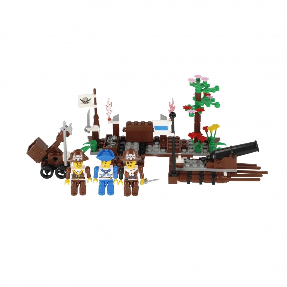 Acest set de construcție cu pirați aduce mici scene cu pirați, soldați, un tun, un cufăr cu comori și un palmier. Datorită celor 4 variante, copiii pot asambla o plută, un ponton, o căsuță de pază sau o mini-navă și pot crea propriile povești pe mare și pe uscat. Fiecare cutie conține un ghid și un set de piese pentru asamblare rapidă și distractivă.