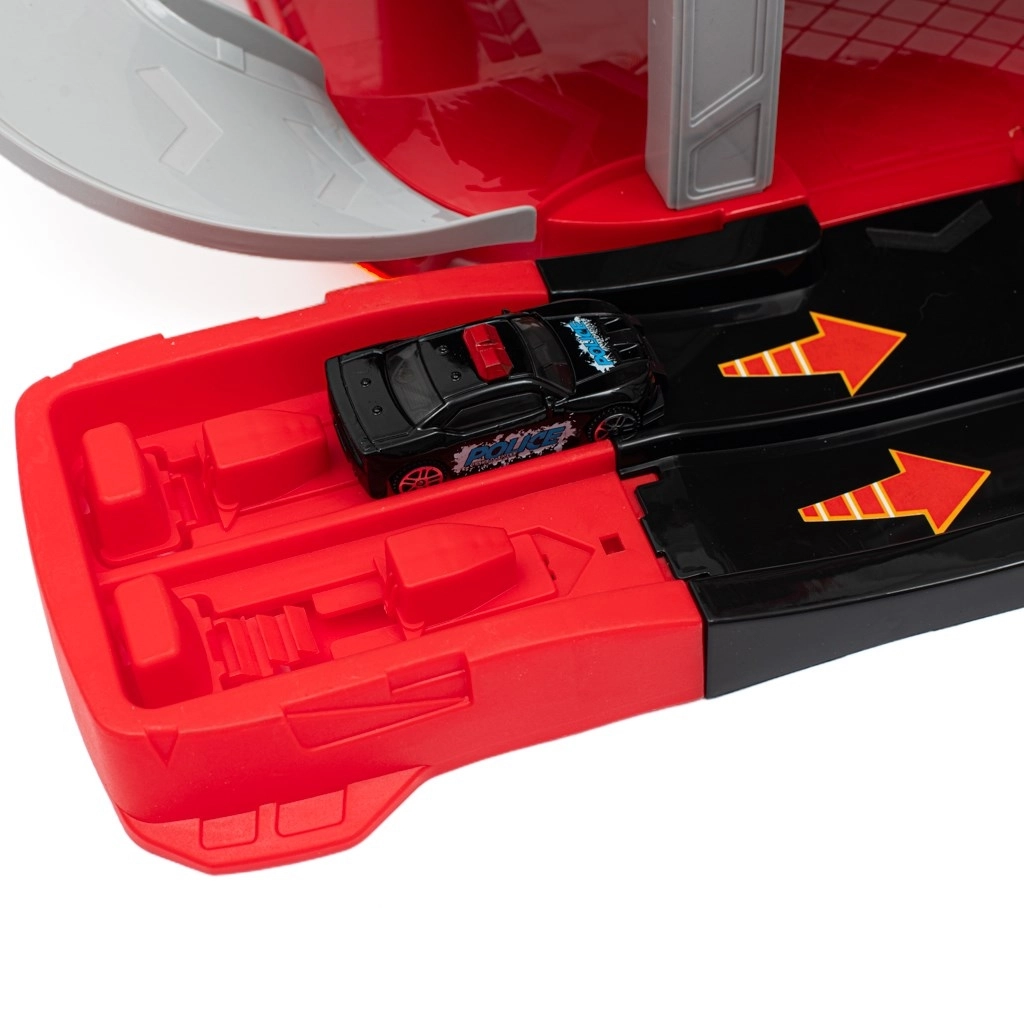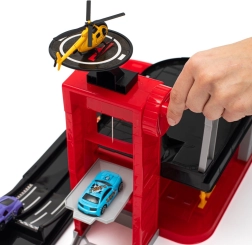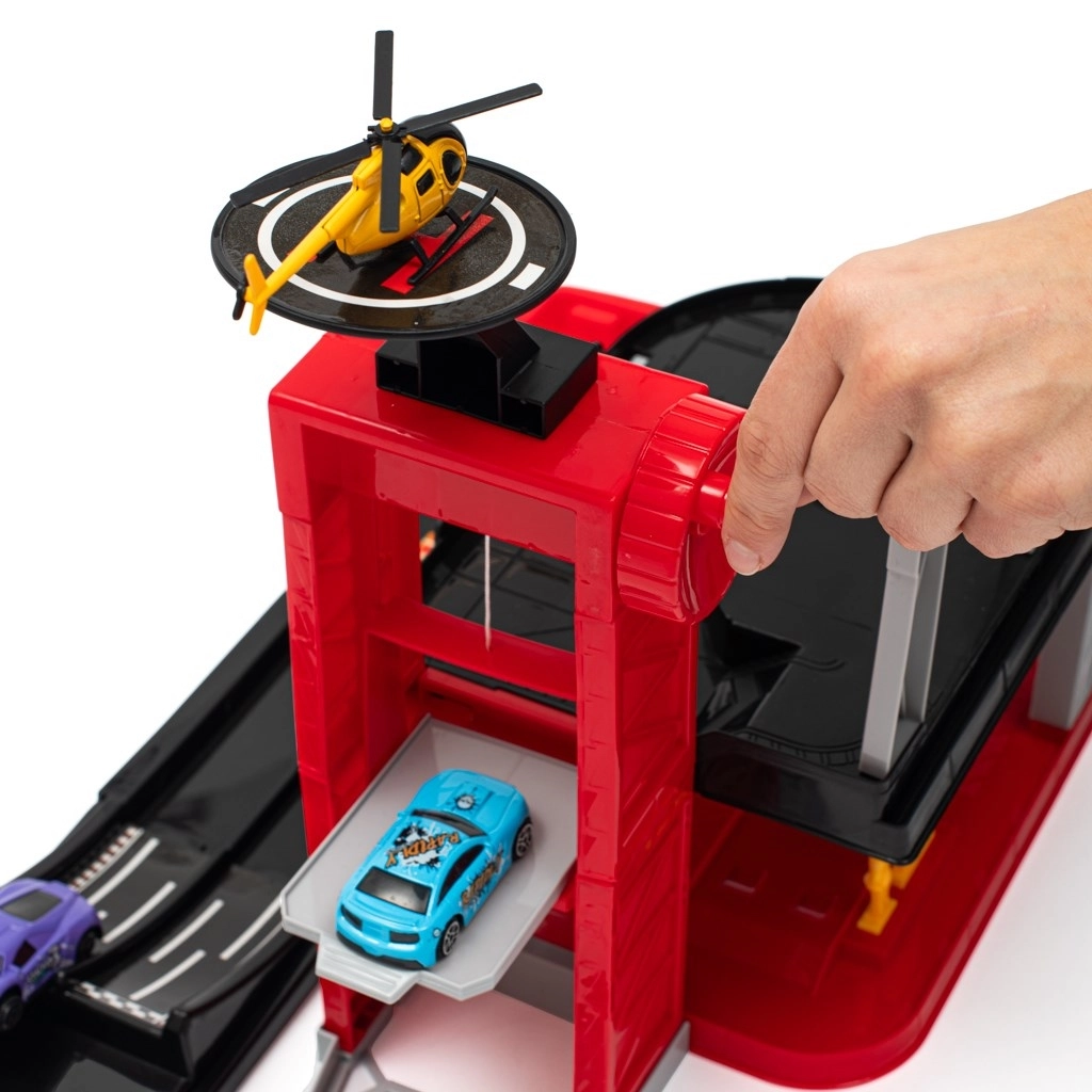 - Parcare cu lift și rampe, stație de alimentare, heliport, 4 mașinuțe metalice, elicopter