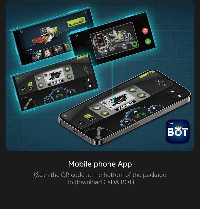 Controlează combina cu telecomanda inclusă de 2,4 GHz sau prin aplicația Bluetooth. Transmisie stabilă și rază de peste 25 m pentru manevrare lină și distracție fără întreruperi.