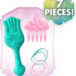 În pachet se află capul de coafat, o perie, un pieptăn și elastice – tot ce au nevoie copiii pentru a crea coafuri frumoase.