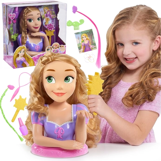 Acest cap de styling premium Rapunzel oferă copiilor tot ce au nevoie pentru a crea coafuri magice. Datorită părului blond, lung, se poate pieptăna, ondula, împleti și combina cu diverse accesorii. Baza stabilă menține capul ferm pe masă, astfel încât copiii se pot concentra pe joaca creativă.