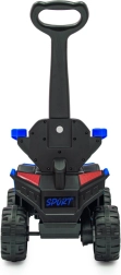 Copilul apasă pedala de accelerație și pornește în aventură. Primă trotinetă electrică ideală pentru acomodare sigură cu mersul.