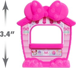 Conținutul pachetului: figurină Minnie, stand/chioșc roz din plastic, ceașcă cu farfuriuță, tort etajat și brioșă. Joaca stimulează creativitatea, dezvoltă comunicarea și abilitățile manuale. Produsul este proiectat cu atenție la siguranța copiilor.