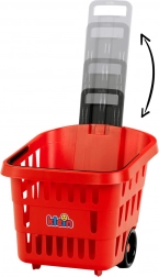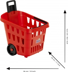 Acest cărucior roșu de cumpărături pentru copii imită fidel coșul real din magazin și stimulează jocul creativ de-a vânzătorul și clientul. Construcția este ușoară, dar solidă și durabilă, astfel încât căruciorul face față „cumpărăturilor” zilnice de acasă și orelor îndelungate de joacă.