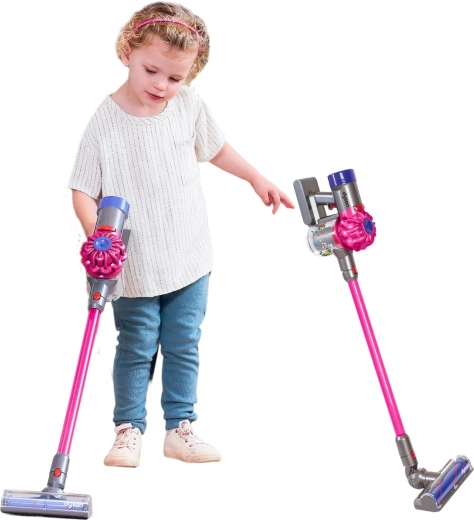 Oferiți-le copiilor bucuria de a-i imita pe adulți cu iconicul aspirator de jucărie CASDON DYSON. Acest aspirator vertical ușor și sigur, în combinație roz-gri, are un aspect autentic, sunete reale și o funcție veritabilă, delicată de aspirare pentru particule mici și ușoare precum confetti din hârtie sau biluțe de polistiren.