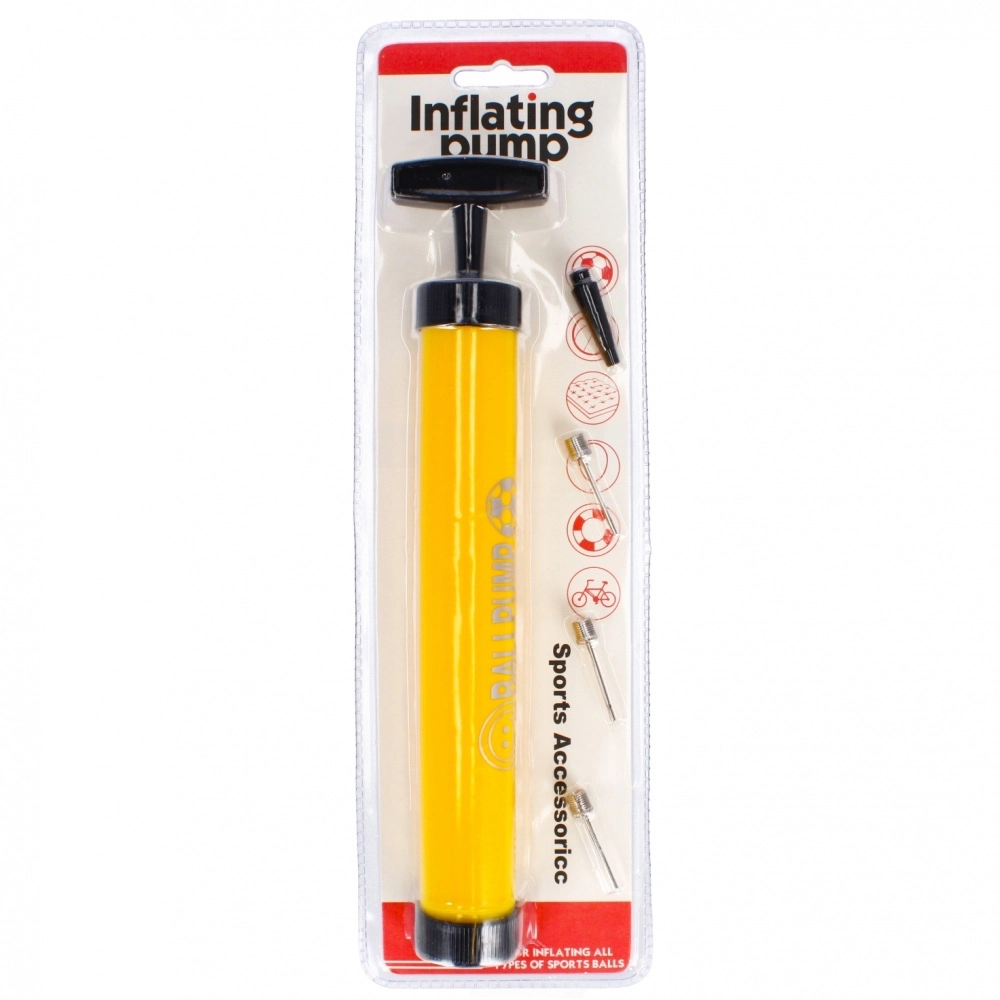 Pompă manuală practică pentru mingi, indispensabilă în orice gospodărie. Datorită designului compact și acelor incluse, mingile tale vor fi mereu perfect umflate. Utilizare universală, manipulare ușoară și transport facil. Pachetul include 4 ace. Culori variate, prețul este pentru 1 bucată.