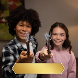 Lasă-te purtat de atmosfera magică a seriei de filme HARRY POTTER și încearcă bagheta realistă Spectacular Spell. Bagheta este activată de mișcarea mâinii, ceea ce conferă fiecărei incantații efectul potrivit. După efectuarea vrăjii, la capătul baghetei apar fâșii argintii care imită lumina magică, iar tu vei auzi un sunet scurt.