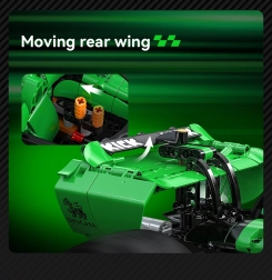 Această construcție îi va încânta pe pasionații de tehnică și pe colecționari. Monopostul F1 este realizat cu precizie, redând fidel formele aerodinamice, sistemul Halo, cockpitul detaliat și marcajele proeminente de pe anvelopele Pirelli – toate datorită imprimării permanente pe piese, fără a fi nevoie de autocolante. Construcția robustă și pașii de asamblare bine gândiți garantează un experiență captivantă de construit.