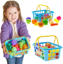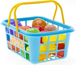 - Coș de cumpărături pentru copii cu fructe și legume din plastic