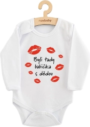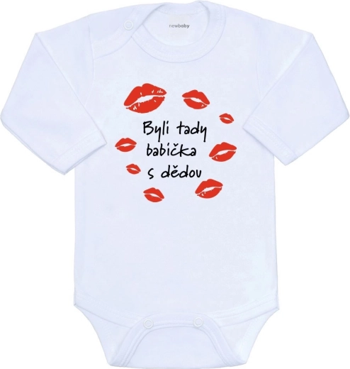 Body confortabil pentru copii NEW BABY din bumbac fin 100%, cu inscripția amuzantă „Au fost aici bunica și bunicul”. Are mânecă lungă și închidere practică cu capse pentru îmbrăcare ușoară. Datorită materialului plăcut, este ideal pentru pielea sensibilă a bebelușilor și este perfect ca dar. Culori certificate și OEKO-TEX STANDARD 100 garantează siguranța și calitatea.