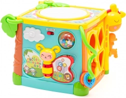 Cubul educațional muzical interactiv BABY MIX este o jucărie multifuncțională pentru descoperiri zilnice. Datorită funcțiilor luminoase și sonore, clapelor, sortatorului de forme și altor elemente, susține dezvoltarea cognitivă, percepția senzorială și curiozitatea naturală a copiilor. Construcția robustă din plastic, cu muchii rotunjite, asigură o joacă în siguranță.