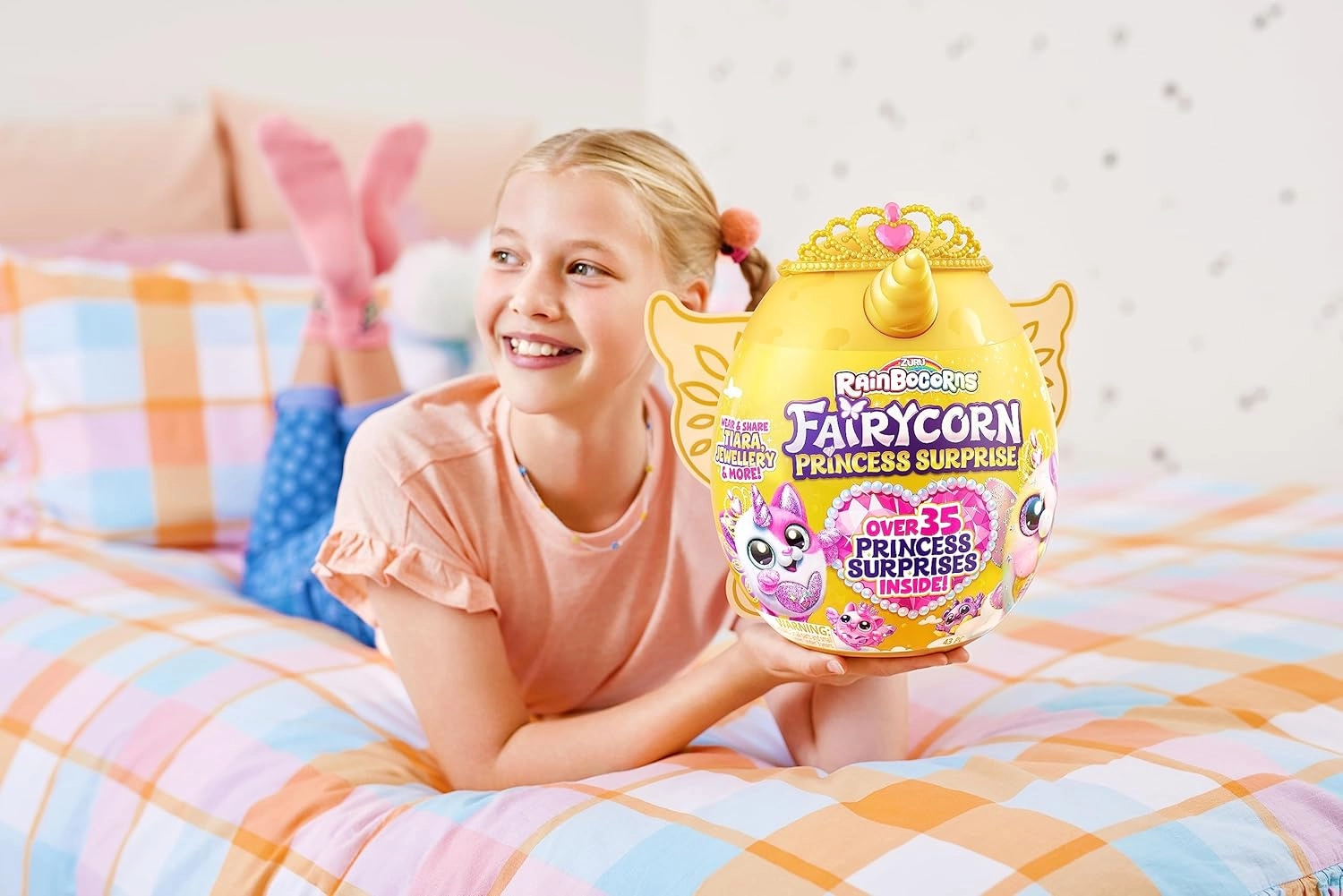 Cu Fairycorn Princess Surprise, fiecare deschidere a oului auriu se transformă într-un moment de basm. În interior te așteaptă o prințesă‑unicorn de pluș cu detalii strălucitoare, inimioară și o mulțime de accesorii care încurajează jocul creativ și momentele împreună. Fiecare pachet aduce o combinație diferită de personaje și accesorii – colecționează-le pe toate!